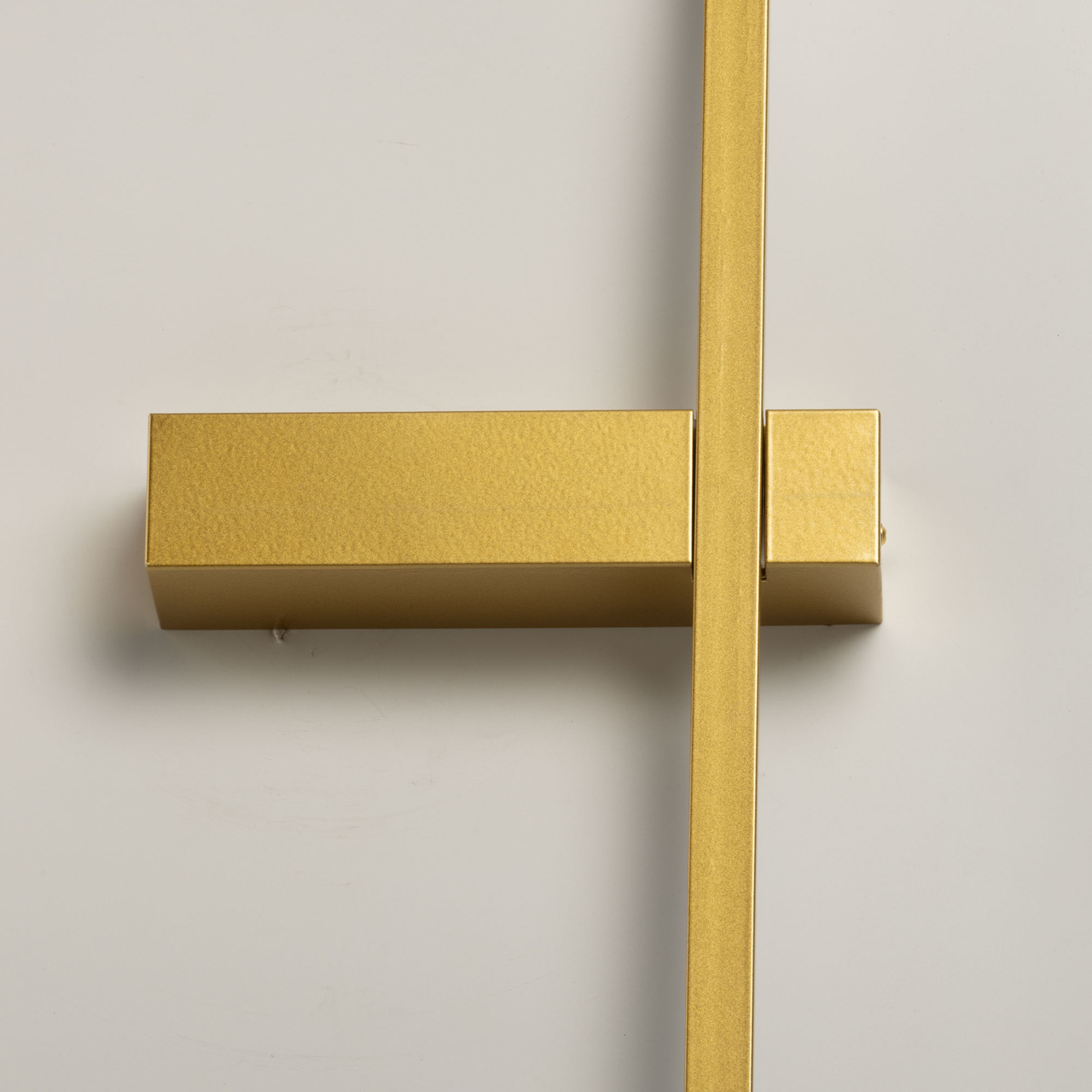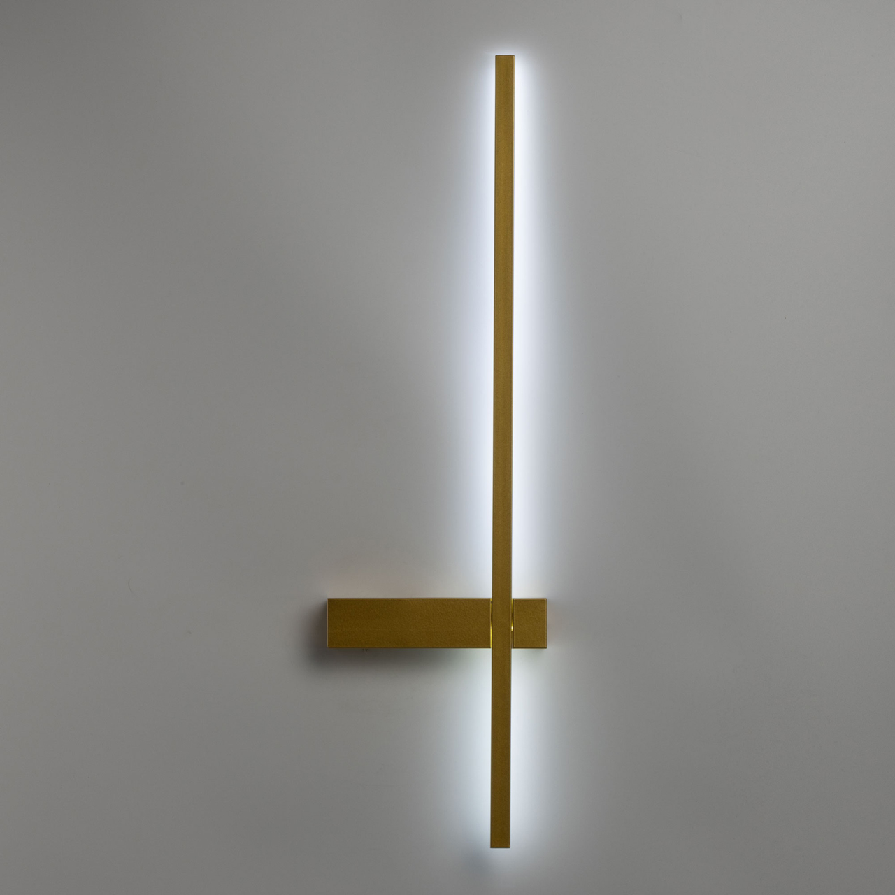Металлическое основание бра окрашено в цвет матового золота. Корпус плафона выполнен из сплава алюминия и окрашен в цвет основания. Светодиодный источник света закрыт акрилом белого цвета.