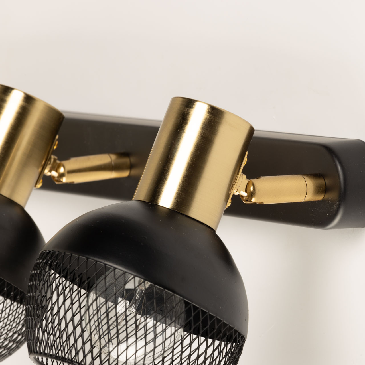 Металлическое основание настенного бра и плафоны окрашены в черный цвет. Отдельные элементы основания гальванизированы в цвет латуни.