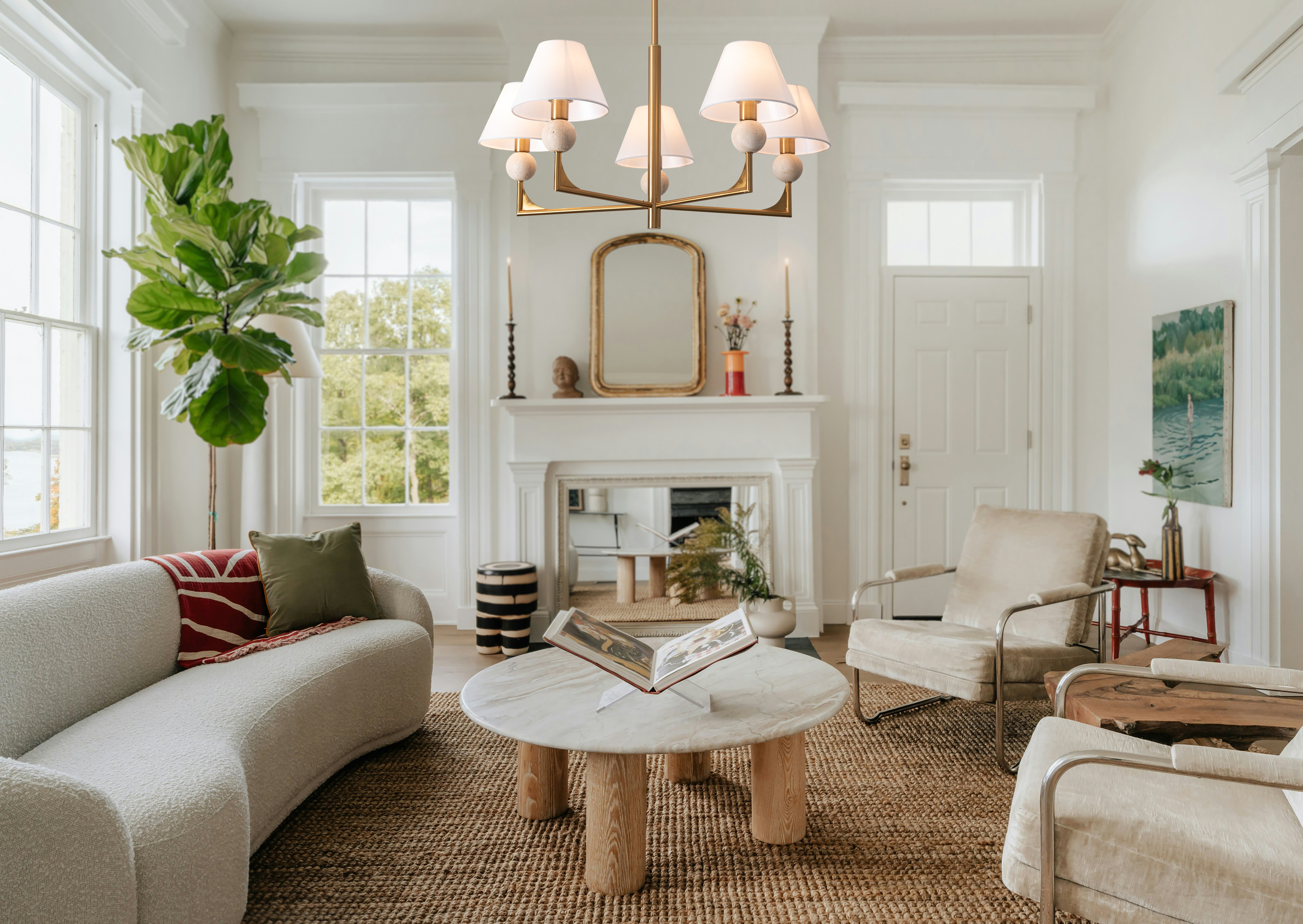 Материал арматуры — металл. Цвет металла — латунь. Абажуры выполнены из белой ткани, которые мягко рассеивают свет. Потолочные и настенные светильники с цоколем E14. Декоративные элементы в форме шара на плафоне выполнены из травертина. Металлическая форма арматуры строгой геометрической формы с пластинами из латуни. Подходит для оформления элегантных классических пространств. Данную модель FR2043WL-01BS спешите купить с быстрой доставкой в магазине 220svet.ru