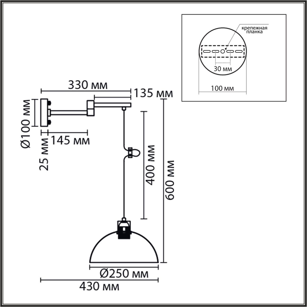 - Форма плафона: Полукруг