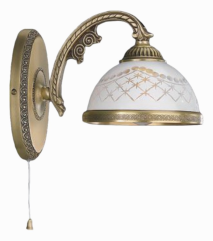 Бра Reccagni Angelo A 7002/1 Итальянского производсва – лучшее соотношение цена-качество. Этот светильник Классического стиля хорошо подойдет Для гостиной и придаст помещению мягкий и приятный свет. Плафоны белые из стекла. Арматура бронза из металла. Кол-во ламп - 1шт. Общая мощность 60W