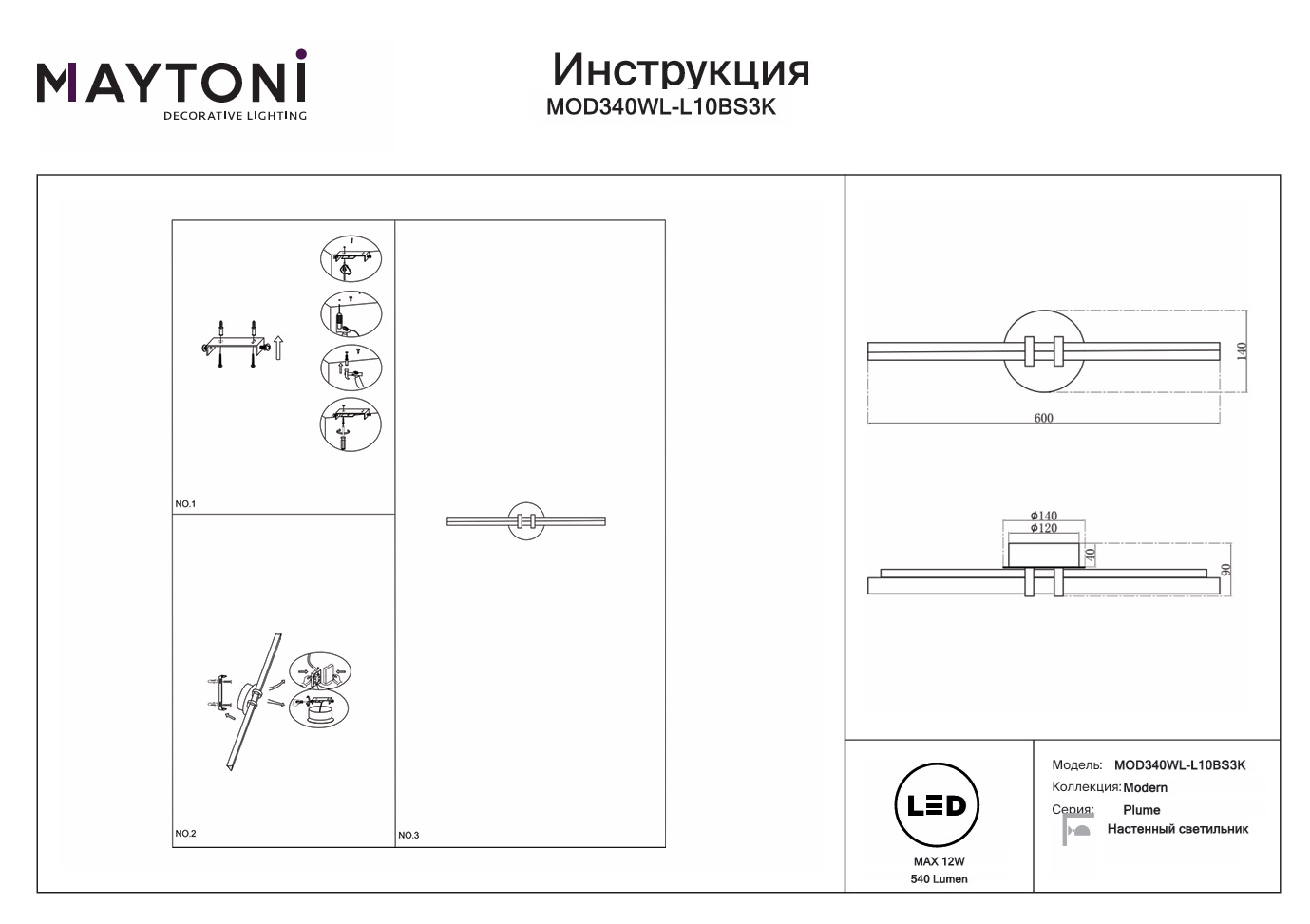 Данную модель MOD340WL-L10BS3K с быстрой доставкой спешите купить по цене 13 990 ₽ в магазине 220svet.ru