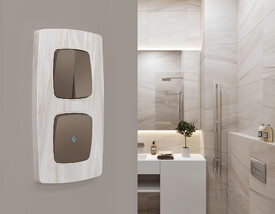 Выключатель двухклавишный проходной с подсветкой 5600K Ambrella Volt Quant OMEGA MO634035