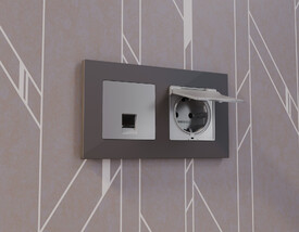 Лицевая панель для электрической розетки с заземлением и шторками Ambrella Volt Quant ALFA AP5070