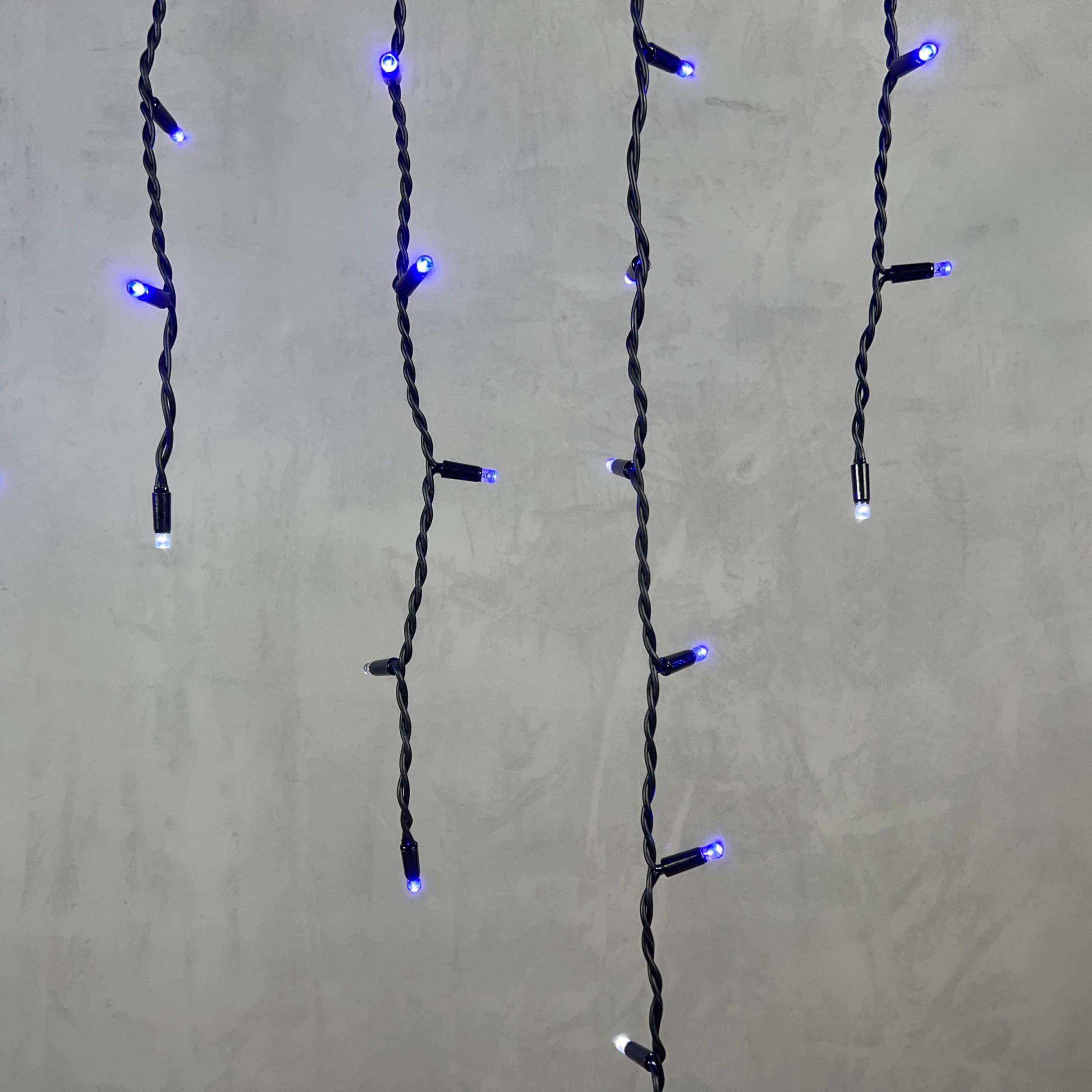 Гирлянда Бахрома 3, 2 x 0, 9 м Синяя с Мерцанием Белого Диода 220В, 168 LED, Провод Черный Каучук, IP65 LTC LL168BLW-1-2B в Подольске
