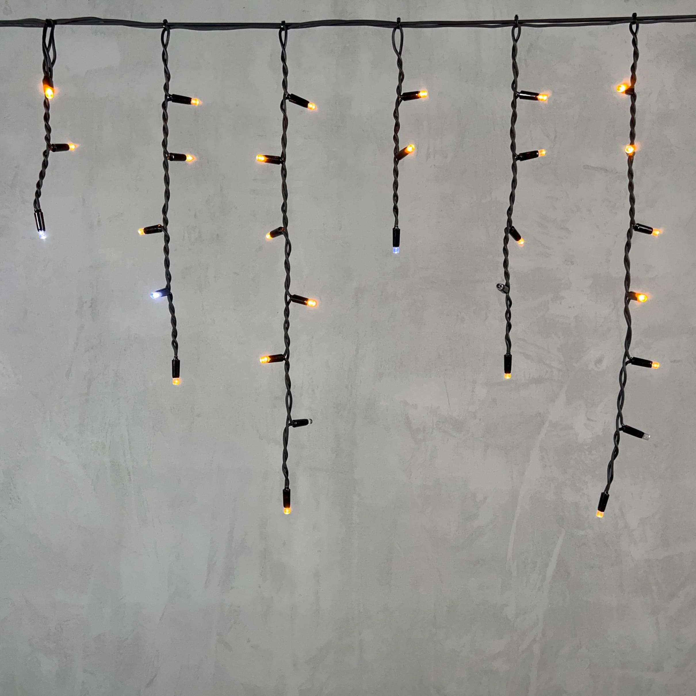 Гирлянда Бахрома 3, 1 x 0, 5 м Жёлтая с Мерцанием Белого Диода 220В, 120 LED, Провод Черный Каучук, IP65 LTC LL120BLW-1-2Y в Подольске