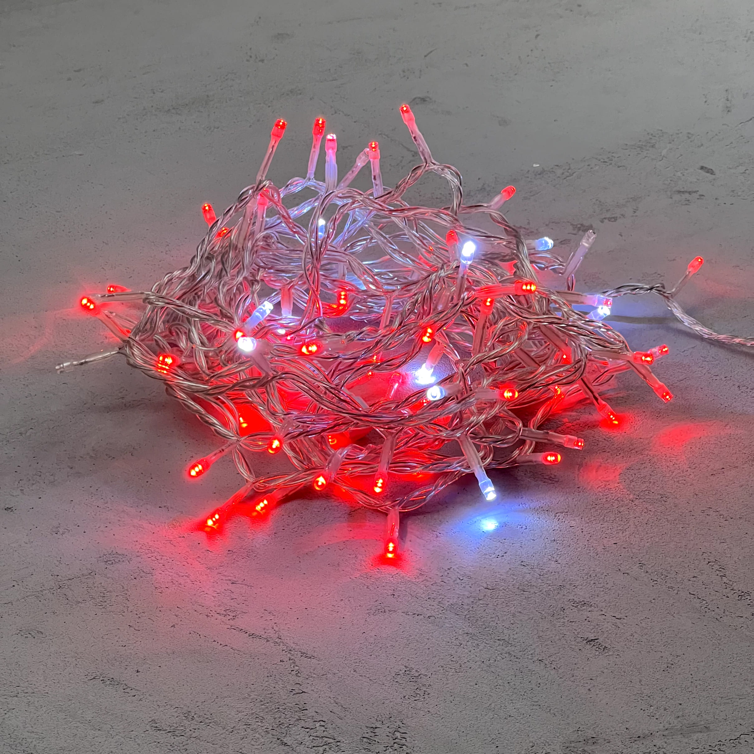 Гирлянда Нить 10м Красная с Мерцанием Белого Диода 220В, 100 LED, Провод Прозрачный ПВХ, IP54 LTC PST100BLW-10-2R в Подольске