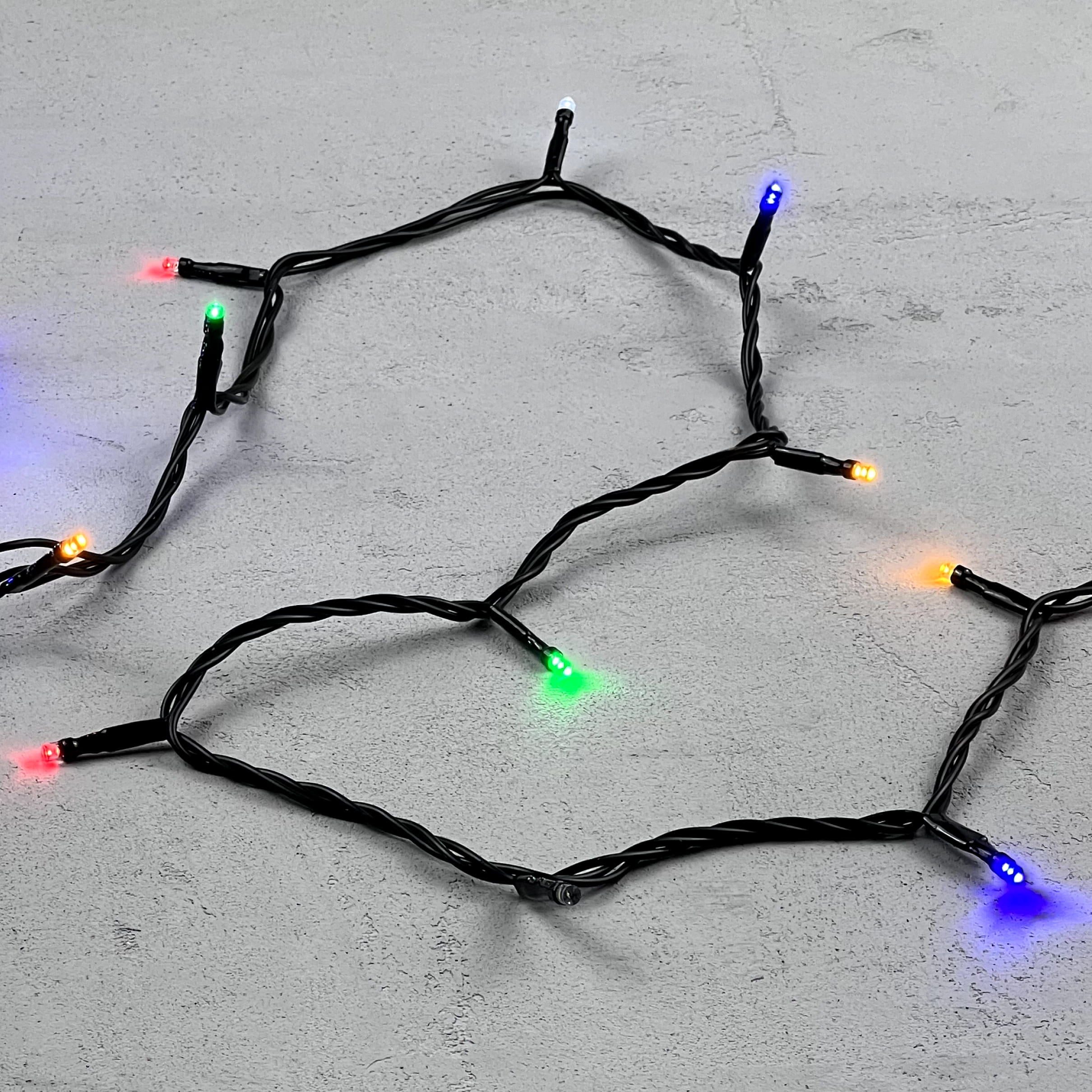 Купить "Гирлянда Нить 10м Разноцветная с Мерцанием Белого Диода 24В, 100 LED, Провод Черный ПВХ, IP54 LTC PST100BLW-11-1M"
