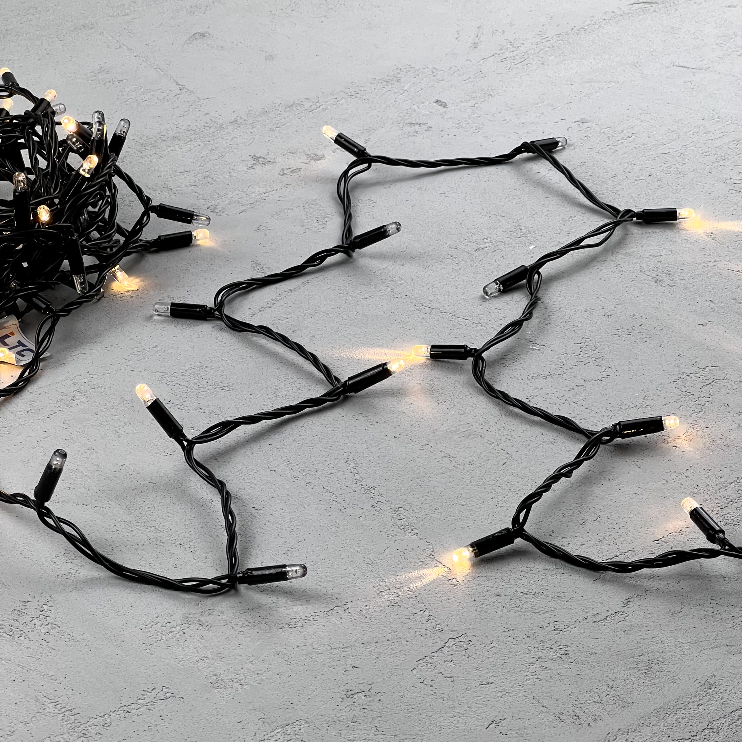 Гирлянда Нить с Колпачком 10м Тепло-Белая с Мерцанием Каждого Диода 24В, 100 LED, Провод Черный ПВХ, IP65 LTC PST100ABLCAP-11-1WW в Подольске