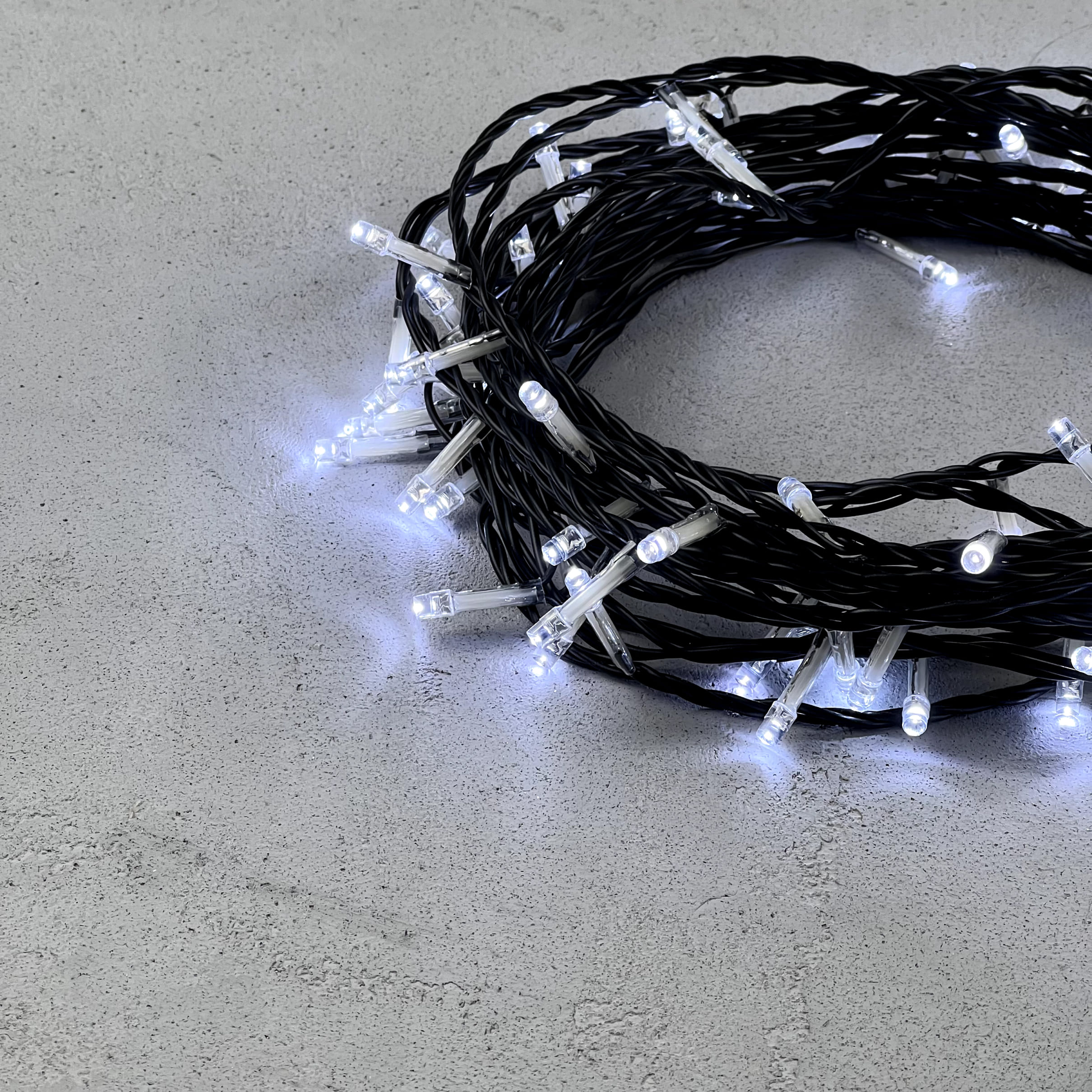 Купить "Гирлянда Нить с Контроллером 10м Белая 220В, 100 LED, Провод Черный ПВХ, IP20 LTC PST100F8-11-2W"
