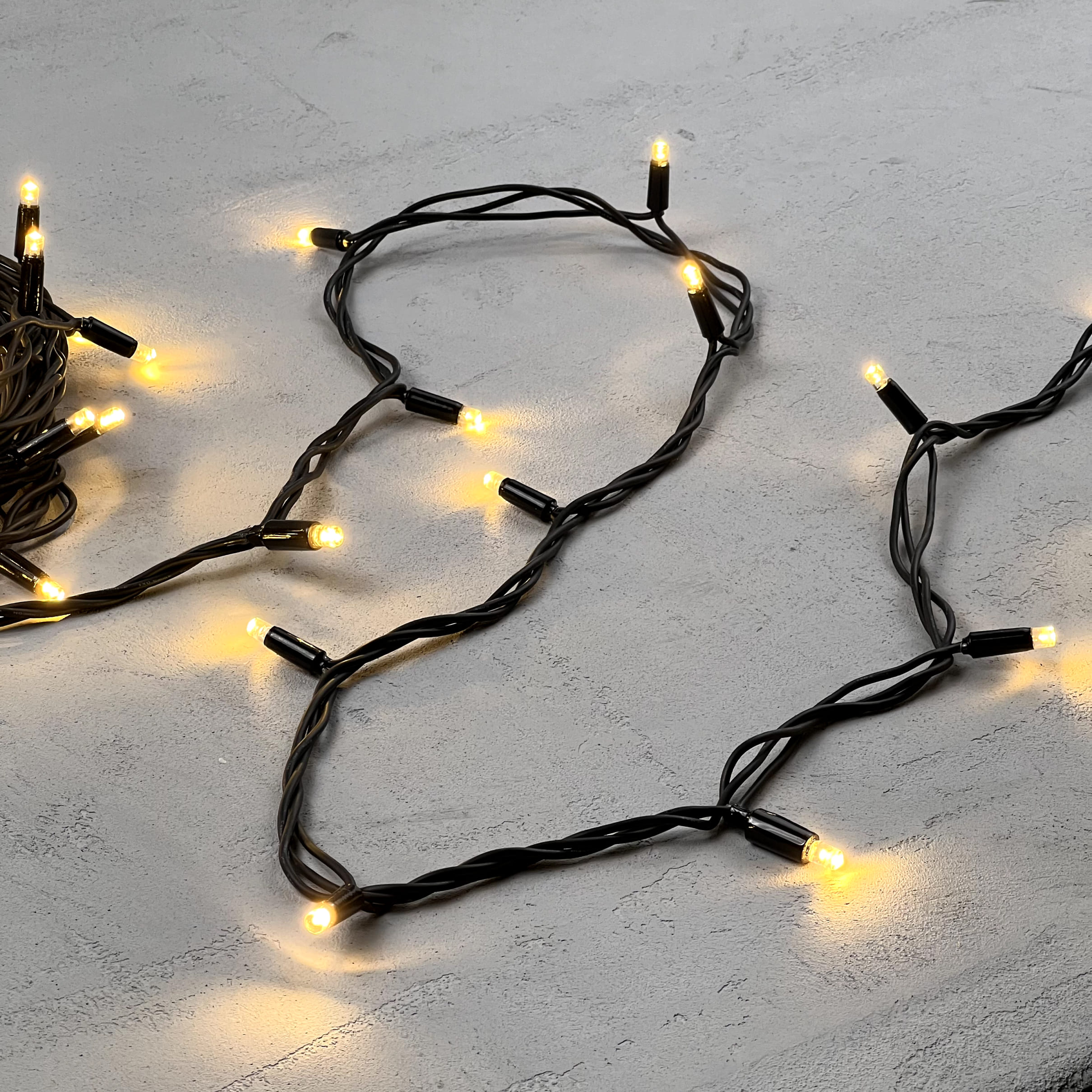 Купить "Гирлянда Нить 10м Тепло-Белая 220В, 75 LED, Провод Черный Каучук, IP65 LTC LL75-1-2WW"