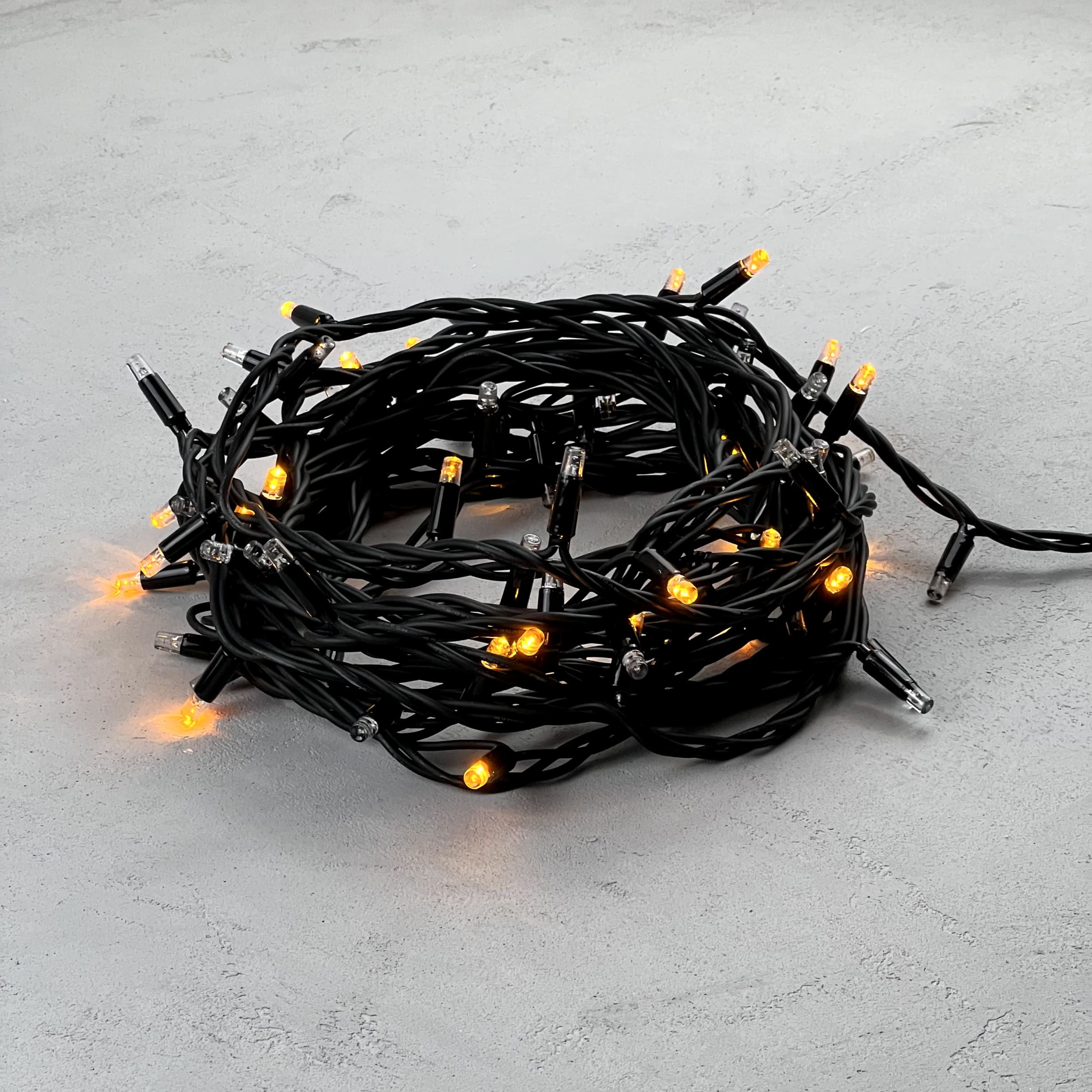 Купить "Гирлянда Нить 10м Желтая с Мерцанием Каждого Диода 220В, 75 LED, Провод Черный Каучук, IP65 LTC LL75ABL-1-2Y"