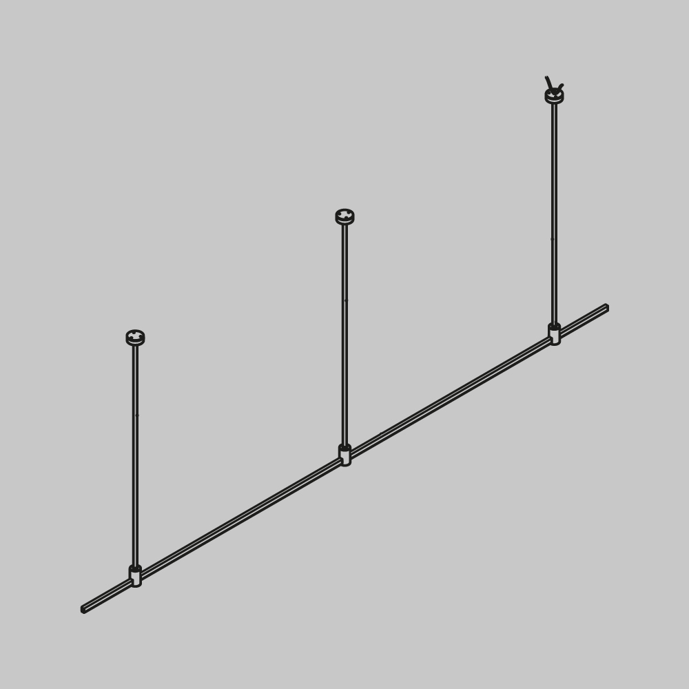 Подвесная конструкция системы Flarity прямой формы с жесткими подвесами Long H745 мм . Светильники и блоки питания приобретаются отдельно, в зависимости от