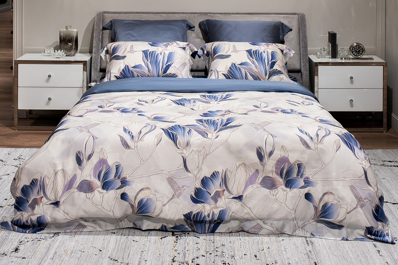 Комплект наволочек с клапаном Магнолия Арт сшит из 100% ткани тенсель. Пошив в коллекции представлен одним из самых распространенных способов украсить постельное белье. По периметру наволочки и пододеяльника делается отстрочка, формирующая бордюр шириной 7 см. Наволочки с 4-мя ушками имеют собственное название кроя - Оксфордские. Принт в пододеяльниках и наволочках Арт Магнолия представлен цветочным дизайном-цветок Магнолия с одной стороны и однотонной обратной стороной синего цвета. Ткань изготовлена из экологически чистого волокна лиоцелл, полученного из древесины эвкалипта. Уход: Деликатная машинная стирка при температуре не выше 30 градусов. При использовании утюга устанавливать режим «шелк» и гладить с изнаночной стороны. Стирать в стиральной машине можно, но только в режиме деликатной стирки и отжима. Не рекомендуется использовать стиральный порошок, только жидкие моющие средства. Полоскание возможно только в холодной воде.