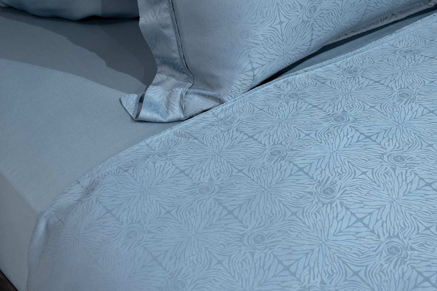 Комплект «Муар» изготовлен из приятного на ощупь 100% бамбукового волокна, которое идеально подходит для людей с чувствительной кожей. Белье из бамбуковых волокон гигроскопично, пропускает воздух, тактильно приятно. Жаккардовое белье пастельных оттенков будет идеально смотреться как в традиционном, так и в современном интерьере. Пошив в коллекции Муар, цвет сине-зеленый, представлен одним из самых распространенных способов украсить постельное белье: С 4х сторон, по периметру пододеяльника и оксфордских наволочек делается отстрочка с плоским кантом в цвет основы, формирующая бордюр шириной 4см. В данный комплект входят: Пододеяльник 145*210- 2 шт., наволочка 50*70-2шт и простыня 270*280. Уход: Машинная стирка при максимальной температуре 40С, мягкий режим. Стирать моющими средствами для цветных тканей. Не отбеливать. Барабанная сушка возможна, обычная температура. Гладить с изнаночной стороны при максимальной температуре утюга. Сухая химчистка запрещена