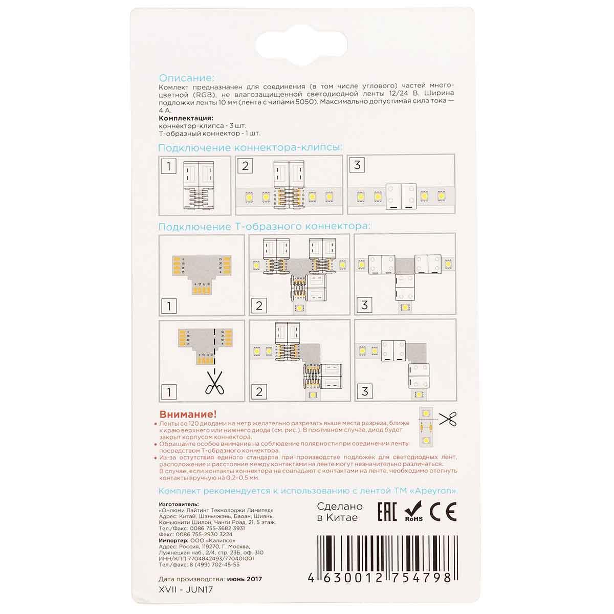 Купить "Коннектор T-образный для RGB светодиодной ленты 5050 Apeyron 12/24V 09-09"