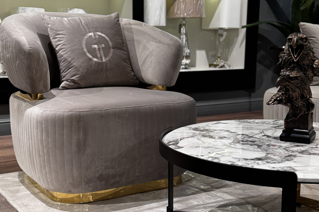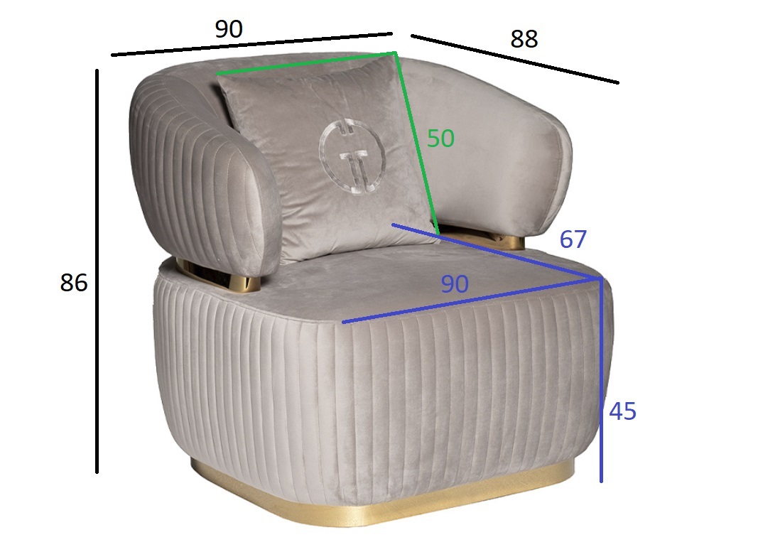 Велюровое кресло из серии Glarus - элегантность формы, сочетание гладкого и волнистого велюра, металлической отделки. Серое велюровое кресло станет отличным дополнением к двух- или трехместному дивану из серии Glarus. Оно эффектно выглядит и украшает собой пространство гостиной, привнося роскоши и элегантности. Это современное кресло выполнено в лучших традициях стилистики ар-деко – мягкая велюровая обивка, отделка из блестящей нержавеющей стали, классические формы. Удобная посадка и поддержка спины обеспечивается за счет мягкой спинки, подлокотников и декоративной подушки. На сайте Garda Decor вы можете купить это мягкое кресло для гостиной в комплекте с другой мебелью в аналогичном стиле – диваном и пуфом из серии Glarus. Габариты сиденья: ширина 90см, глубина 67см, высота от пола 45см В комплект входит 1 декоративная подушка 50*50см с логотипом GD (GARDA DECOR). Сочетается с двухместными диванами 102AN-DIV-1302-KOR, трехместными 102AN-DIV-1303-SER и пуфами 102AN-PUF-1300-KOR.