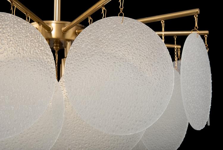 Холодная красота серии Porto – заслуга нетривиального декора, выполненного в виде тонких округлых пластин с эффектом замороженного стекла цвета рисовых полей. Теплый свет, проходя сквозь фактурную поверхность, создает атмосферу с настроением щедрого ар-деко. Металлическая арматура в двух оттенках – латунь и никель – имеет элегантные, утонченные формы. Сочетание тонко очерченных рожков и воздушного стеклянного декора создает эффект парения. Светильник словно замирает в воздухе, образуя своеобразную визуальную иллюзию. Яркая модель подойдет для комнат, оформленных в стиле ар-деко, модерн, неоклассика. Серия включает люстры разных размеров на 6 и 8 ламп. Все светильники снабжены цоколем Е14.