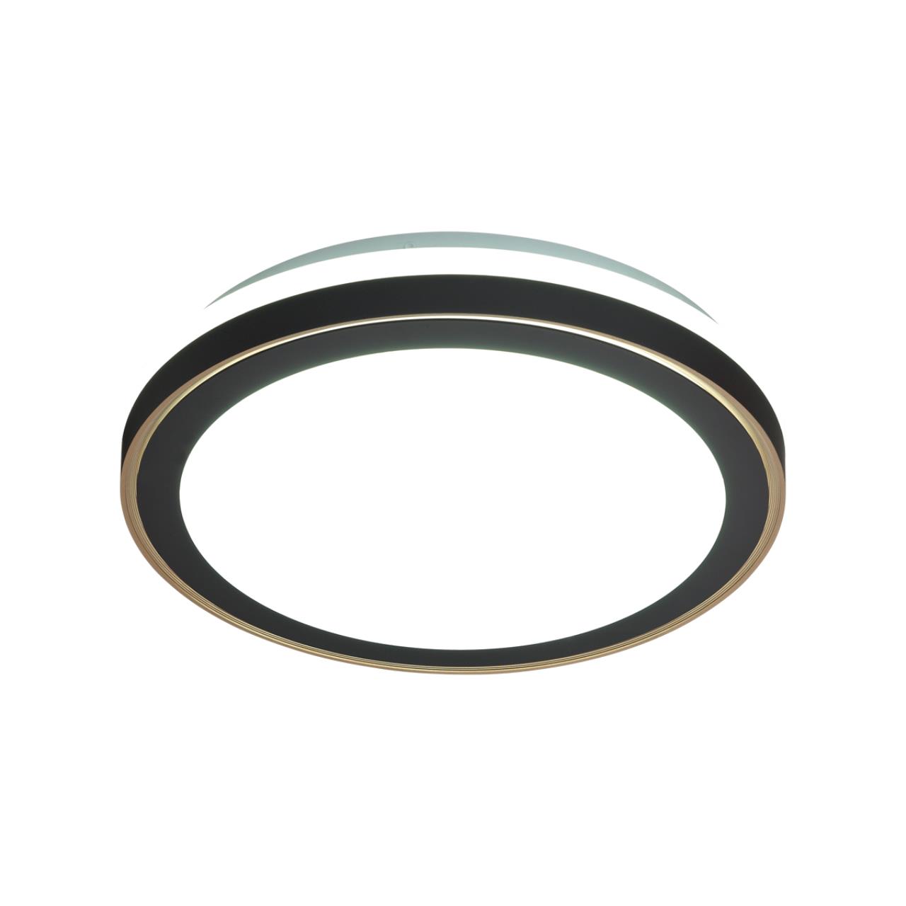 Светильник 7620/DLN линии AKUNA состоит из металлического основания (базы) и пластикового рассеивателя. Материал рассеивателя — качественный акрил белого цвета с матовой поверхностью без текстуры. Пластик обеспечивает светильнику равномерное рассеивание и хорошее светопропускание. Форма плафона — круглая, декорирована ободом из пластика черного цвета и кантом медного цвета. На боковой части плафона имеется светящаяся зона, близкая к поверхности, которая красиво подсвечивает потолок и стену. Степень защиты IP43 позволяет использовать светильник в определенных зонах влажных помещений. В комплект входит LED-модуль с линзами мощностью 48 Вт, которая соответствует лампе накаливания 515 Вт, а также переключатель температуры цвета (ССT) на драйвере, с помощью которого осуществляется изменение цветовой температуры 3000/4000/6000К и переход светильника в режим теплого/белого/холодного света. Для установки необходимого режима рекомендуется использовать удлиненный тонкий предмет типа небольшой отвертки.