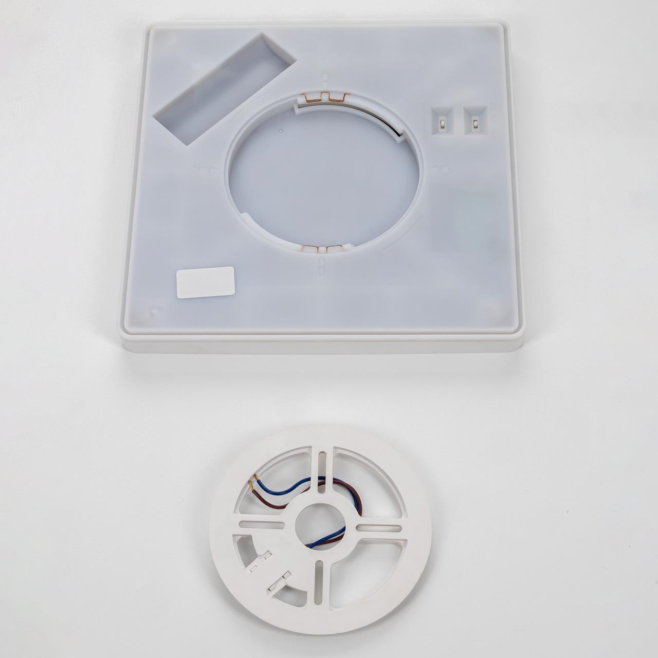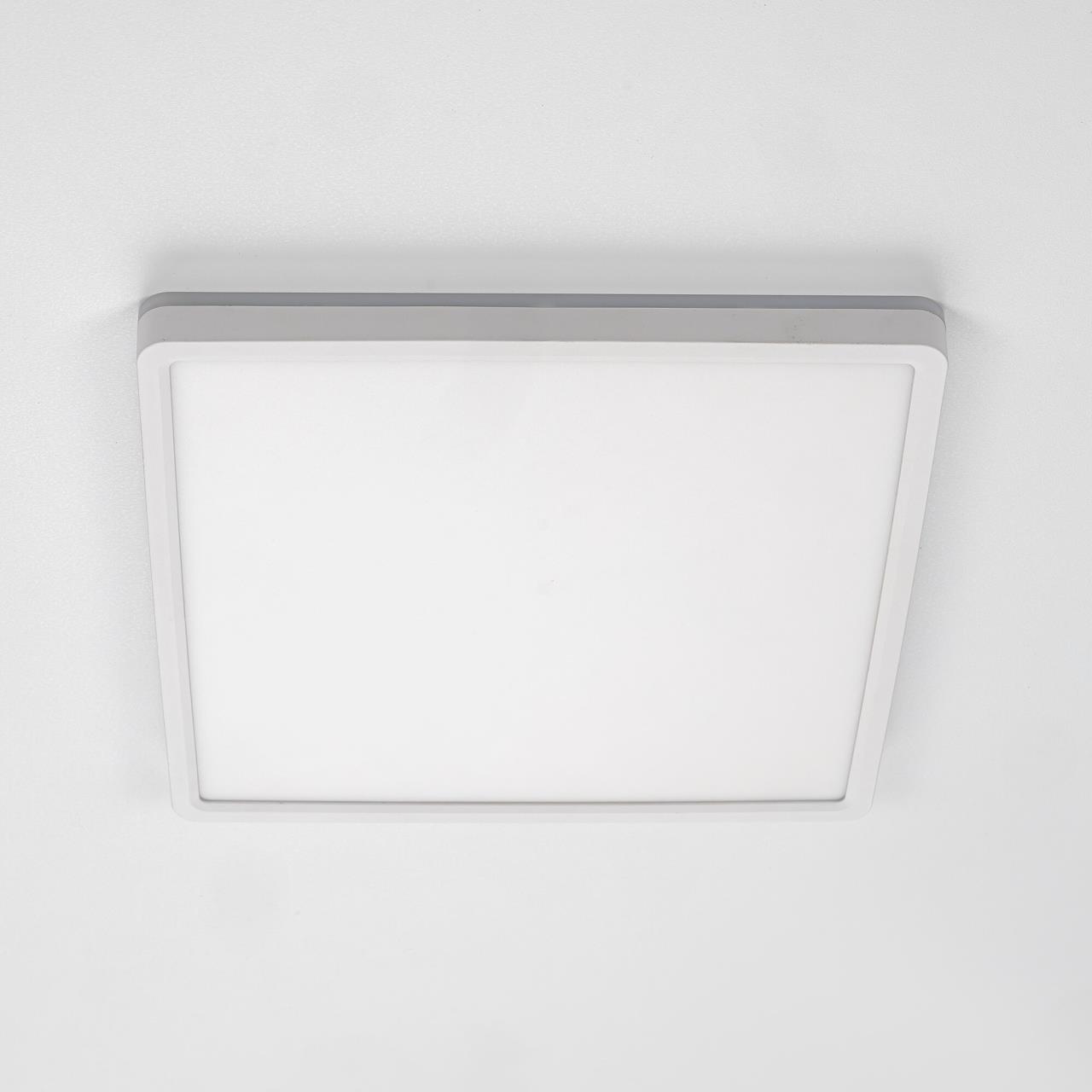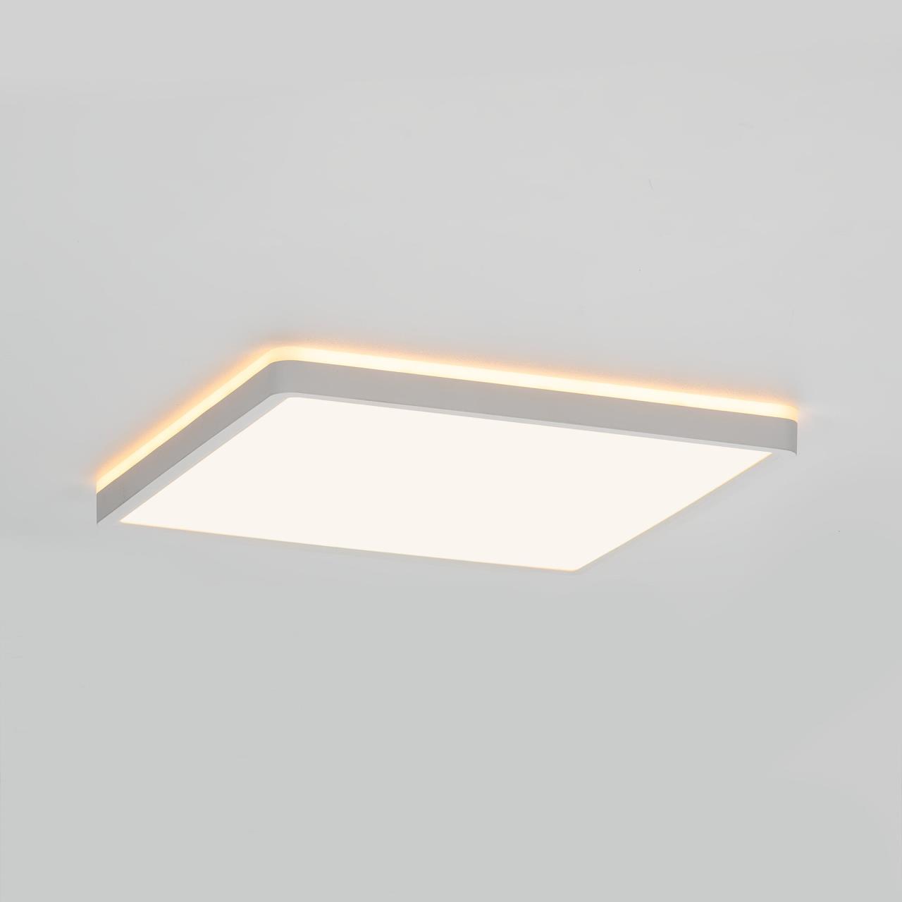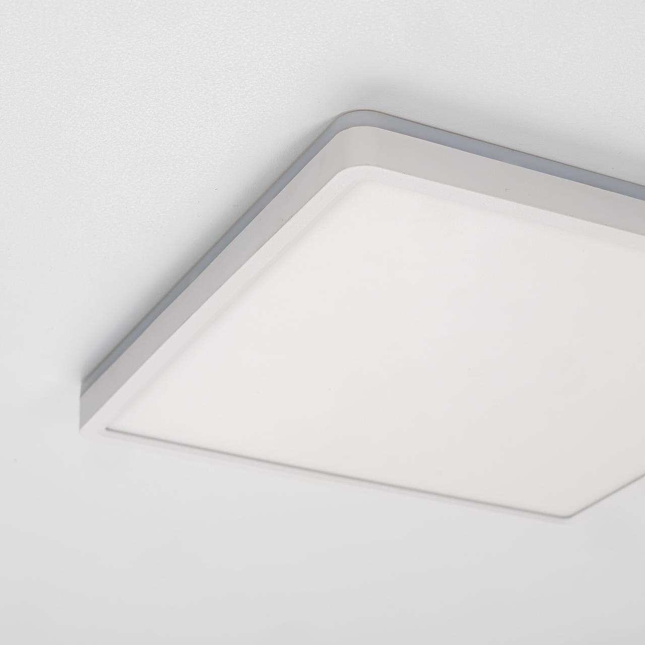 Изделие обладает высокой энергоэффективностью основного света – 120Лм/Вт, осветит до 12м². Мощность: основной свет - 32Вт, потолочная подсветка - 8Вт. Размер 30х30см, высота 2,5см. Свет безопасный для глаз, без мерцания и пульсаций. Тип крепления – удобная монтажная платформа.