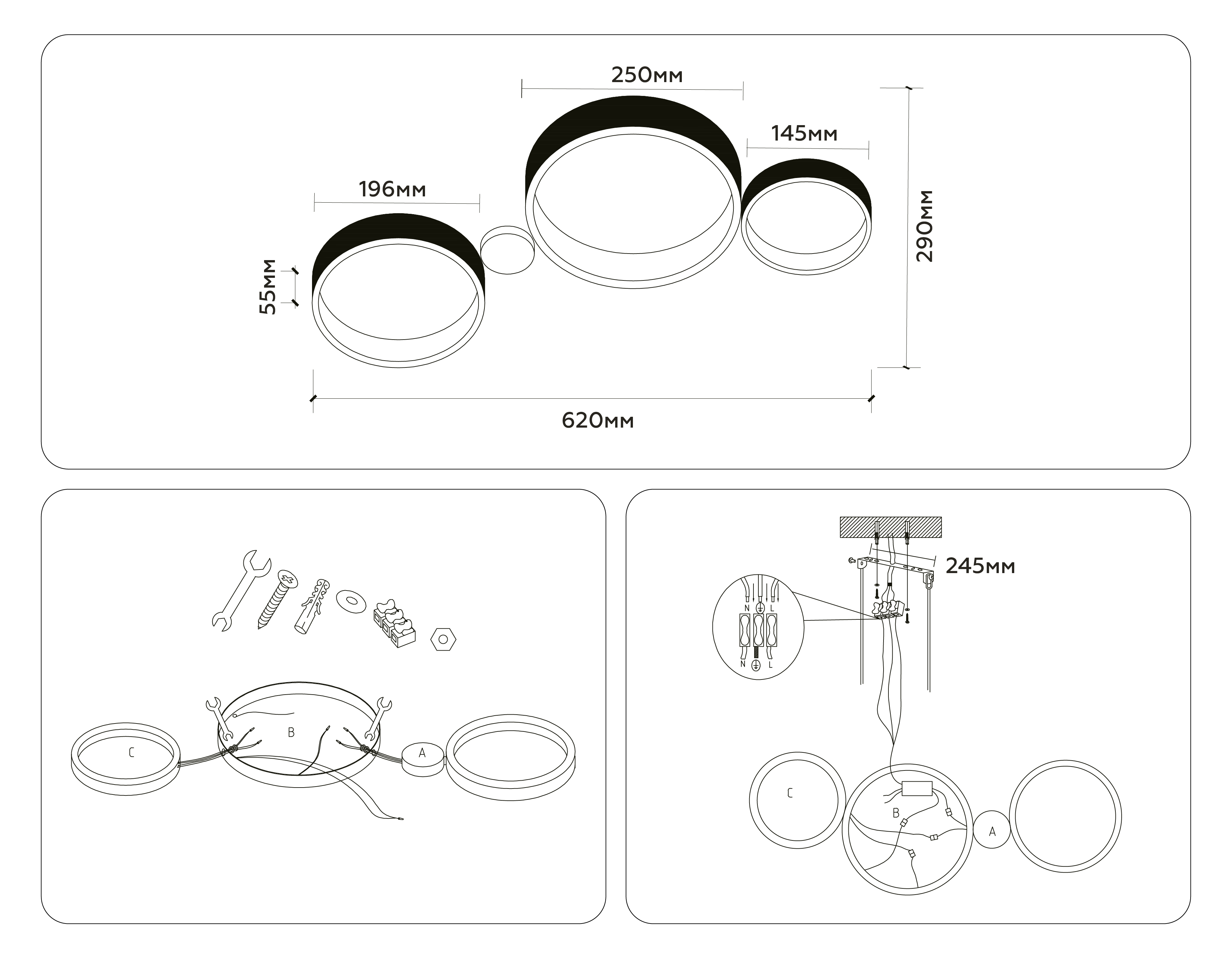 - Количество плафонов: 3