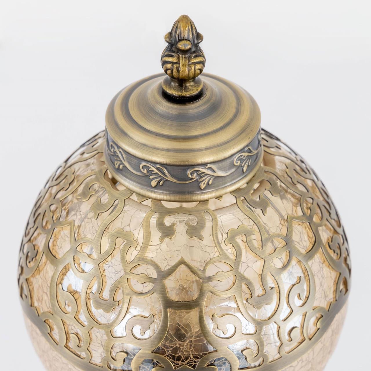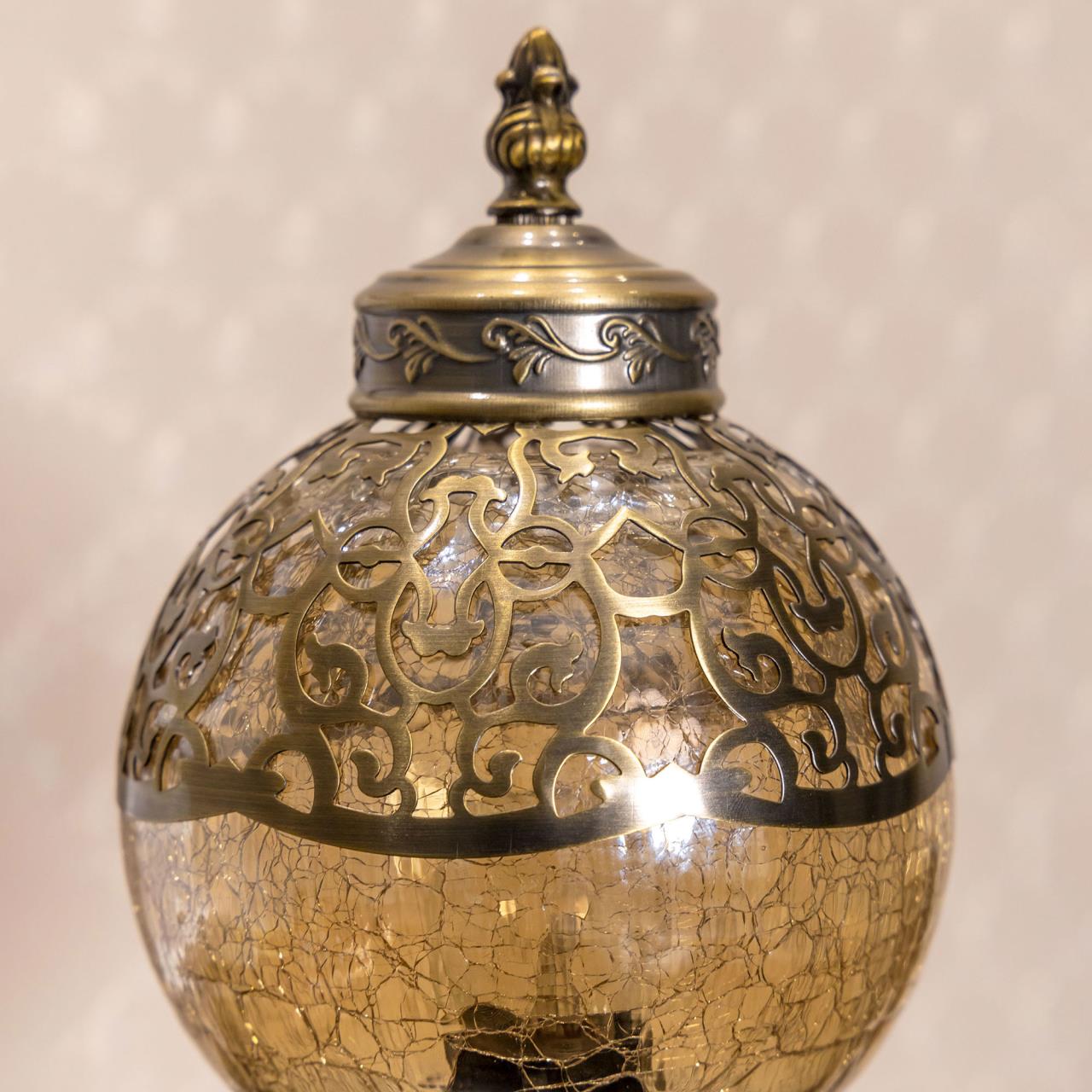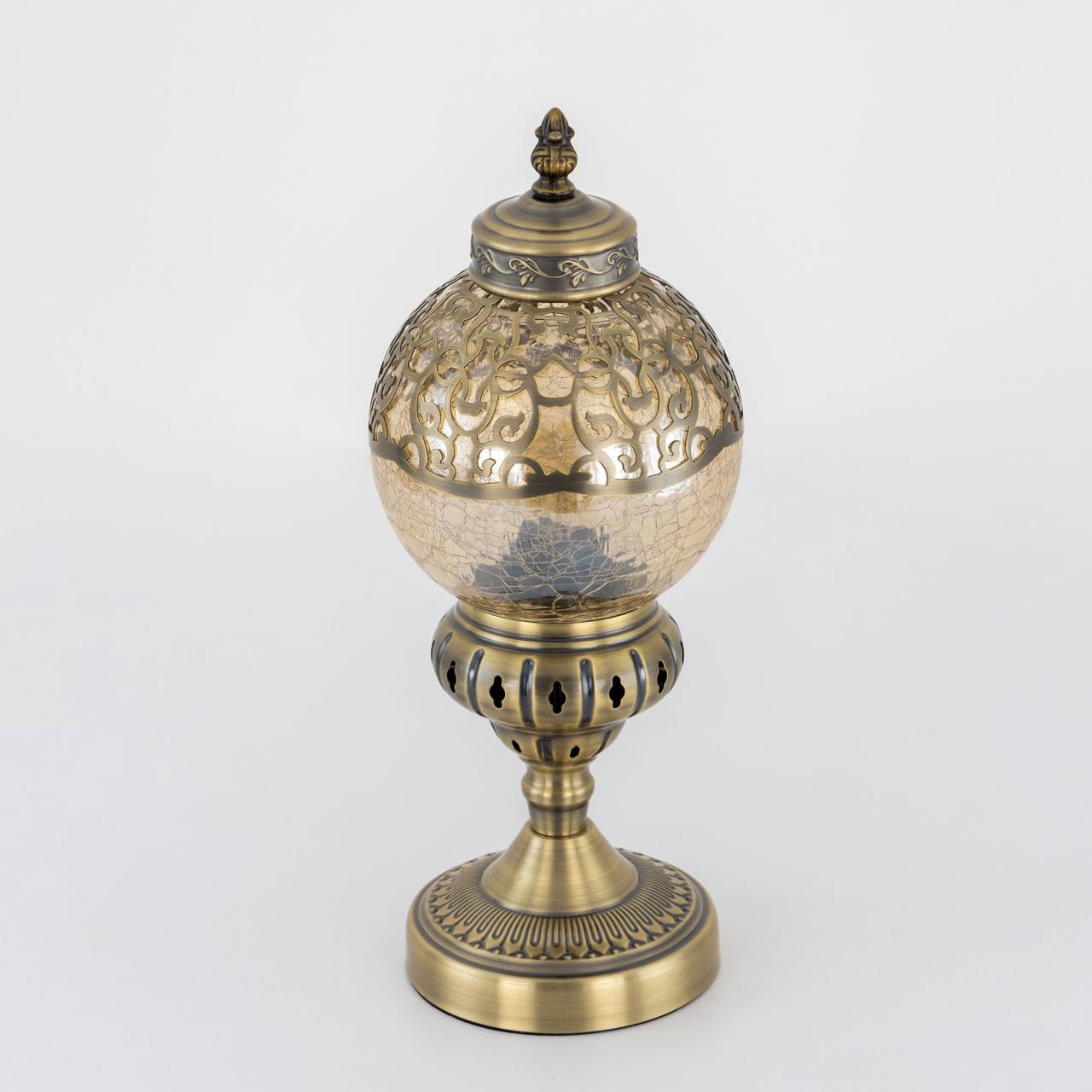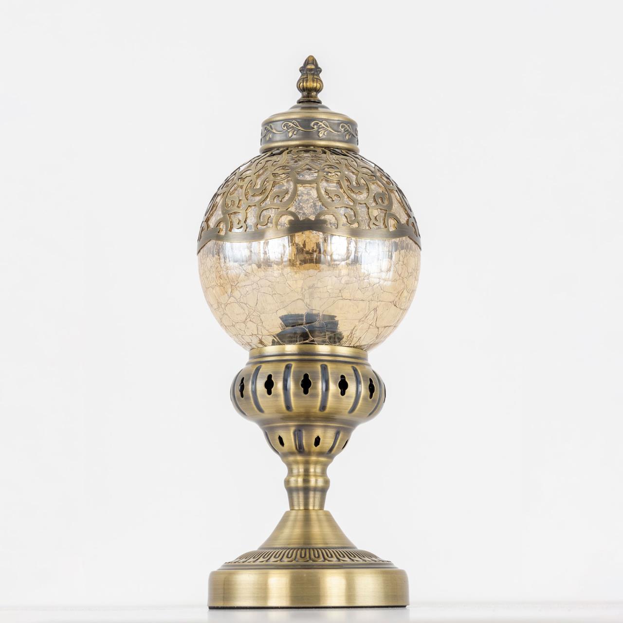 Восточная настольная лампа CL419813 от производителя Citilux относится к коллекции Каир бронзового цвета. Основание светильника металлическое. Плафон в форме шара, изготовлен из прозрачного стекла оттенка шампань и украшен декоративными, ажурными элементами. В изделии одна лампочка с цоколем Е27, максимальной мощностью для ламп накаливания 75Вт, светодиодные лампы можно устанавливать более яркие. Высота светильника 37см, диаметр 15см. Длина шнура 1,7м, выключатель находится на расстоянии 20см от основания. Настольная лампа Citilux Каир CL419813 прекрасный вариант для атмосферного освещения квартир и загородных домов, уютных кафе, баров и ресторанов, оформленных в восточном стиле , страна бренда Дания . Купить модель CL419813 спешите в интернет магазине 220svet.ru