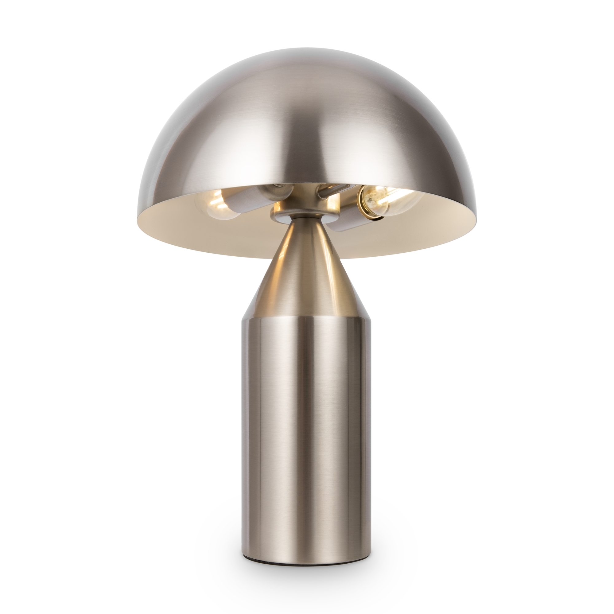 Ретросилуэт модели вдохновлен эстетикой Баухауса и традиционным для немецкой школы принципом «less is more». Отсутствие декора позволяет сосредоточить внимание на оригинальной форме светильника. Здесь удачно сочетаются простые геометрические фигуры: цилиндр, конус, обтекаемая полусфера. Металлическая арматура в оттенке латуни добавляет модели эстетической ценности. Трендовый дизайн актуален как для современных, так и классических интерьеров: он будет выгодно смотреться в окружении ар-деко и mid-century modern, в обстановках, оформленных в стиле конструктивизм, минимализм, сканди. Серия включает одиночный подвес и настольную лампу – идеальный ансамбль для зональной подсветки спальни, гостиной, кухни, рабочего кабинета.