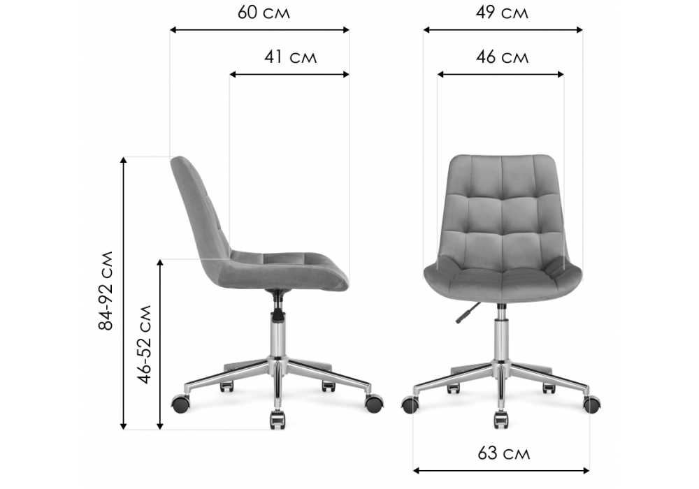 Высота спинки: 38 см. Материал каркаса - металл; Материал сиденья - велюр; Материал обивки - велюр; Ширина - 49; Глубина - 60; Высота - 84; Ширина сиденья - 46; Глубина сиденья - 41; Высота сиденья - 46; Высота спинки - 38; Высота максимальная - 92;