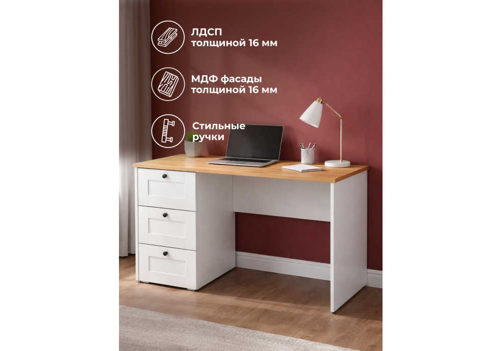 Письменный стол Woodville Опра белый шагрень / дуб золотой craft 676810 в Подольске