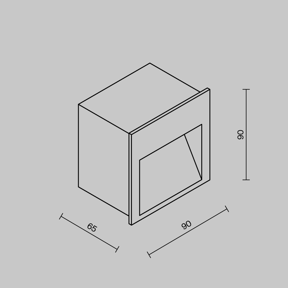 Материал арматуры - алюминий. LED-источник света, мощность 2W. Размеры: 65×90×90 мм. Специализированная подсветка для лестниц.