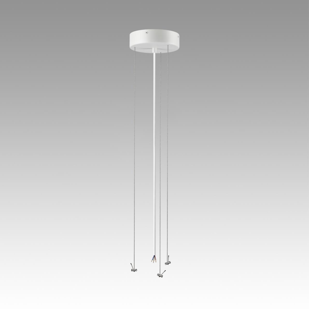 Тросы подвесного крепления для модели QUASAR LED выполнены из металла. Потолочная металлическая чаша выкрашена в цвет корпуса светильника - снежно-белый. Питающий провод - белого цвета.