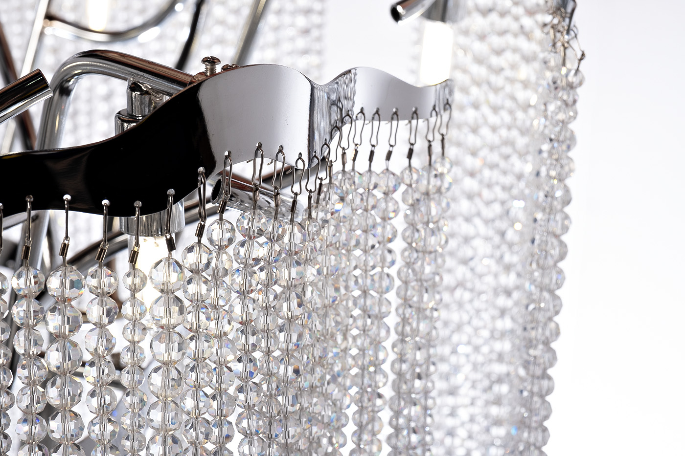 Роскошная подвесная люстра с подвесками – классика в современном прочтении. Яркий пример потолочного светильника в стилистике ар-деко. Каскады из кристаллов обеспечивают бесподобный визуальный эффект – они преломляют свет и дарят мягкое сияние, наполняя комнату блеском и особенным уютом. Дизайнерская подвесная люстра в гостиную станет главным декором, который сразу обращает на себя внимание. Благородный блеск хромированного металла и стекла добавляет обстановке роскоши. Эстетика и качество исполнения безупречны. Стеклянная люстра прекрасно дополнит интерьер в стилистике ар-деко, неоклассика, модерн, контемпорари. Рекомендуемая площадь освещения 15-20 м2