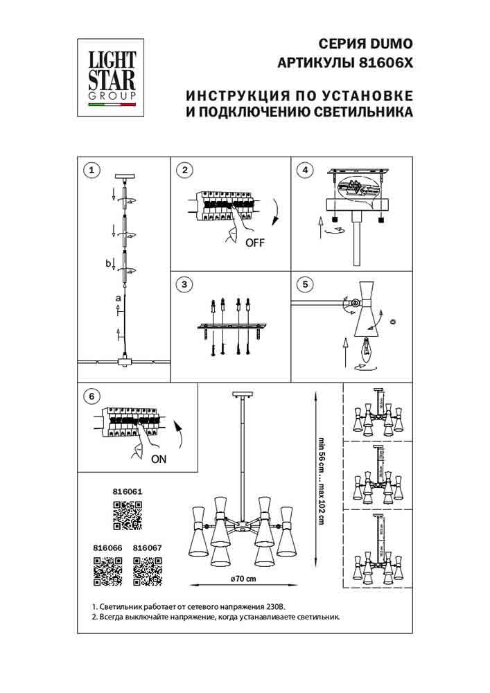 - Количество ламп: 6 шт