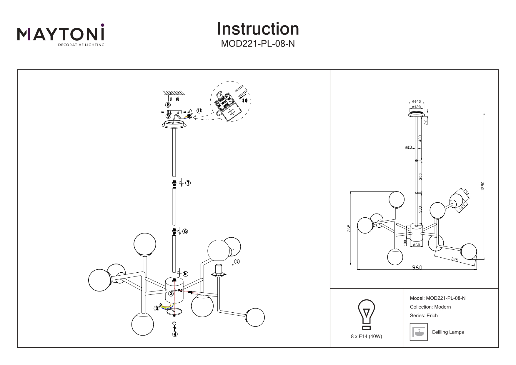 Подвесная люстра Maytoni Erich MOD221-PL-08-N в Подольске