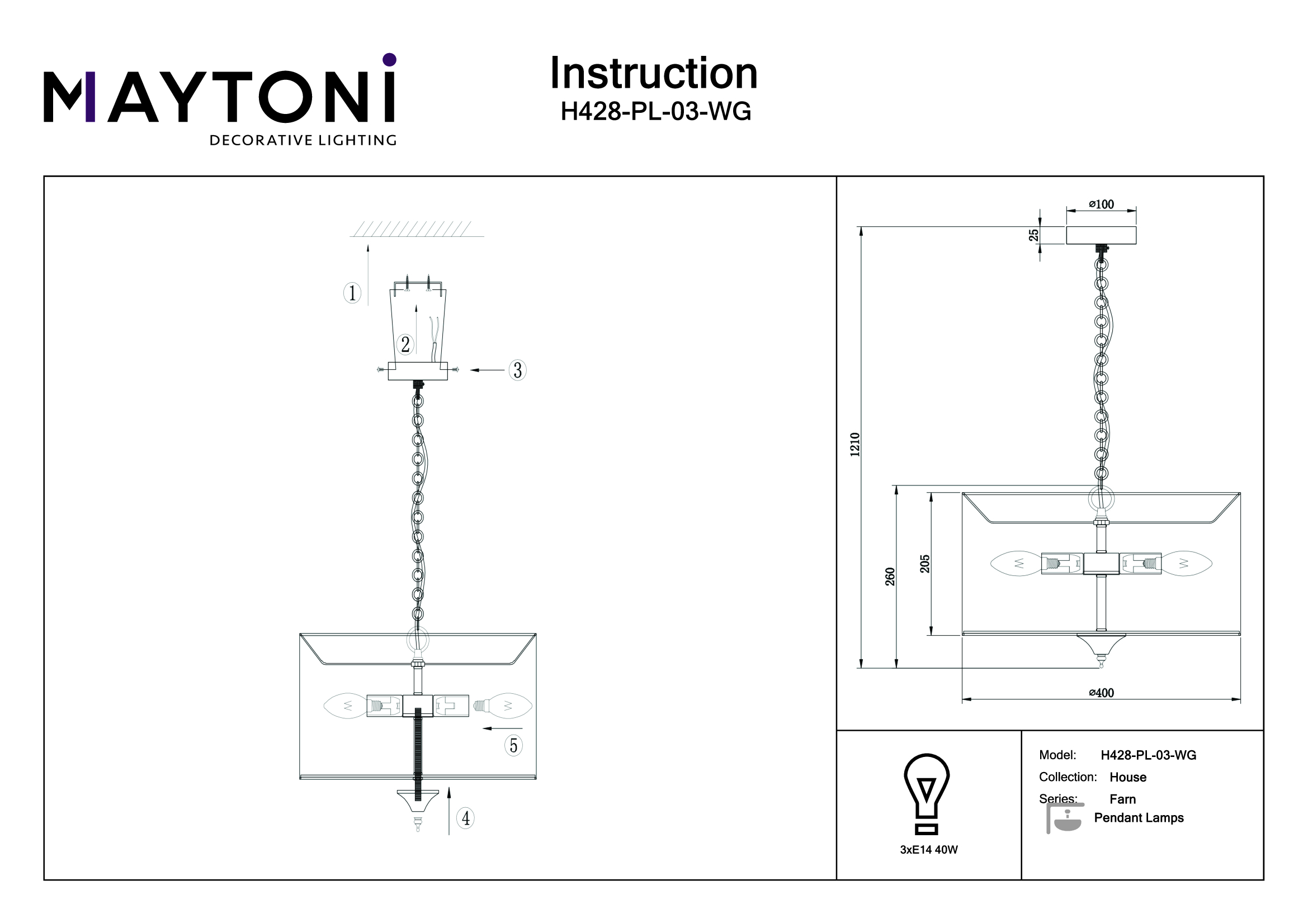 Подвесная люстра Maytoni Farn H428-PL-03-WG в Подольске