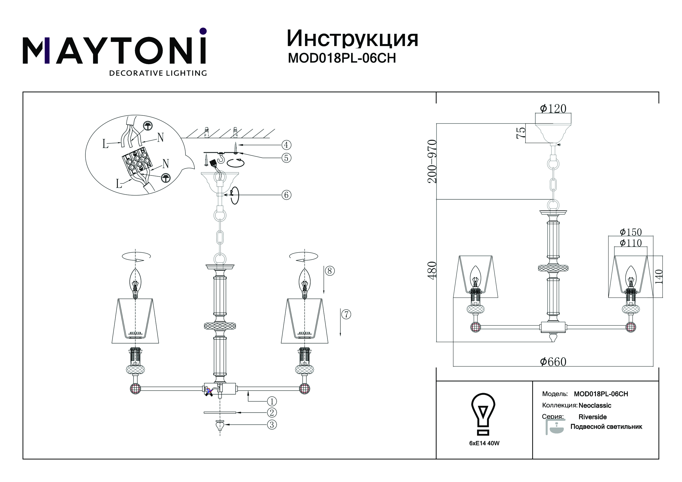 Купить "Подвесная люстра Maytoni Riverside MOD018PL-06CH"