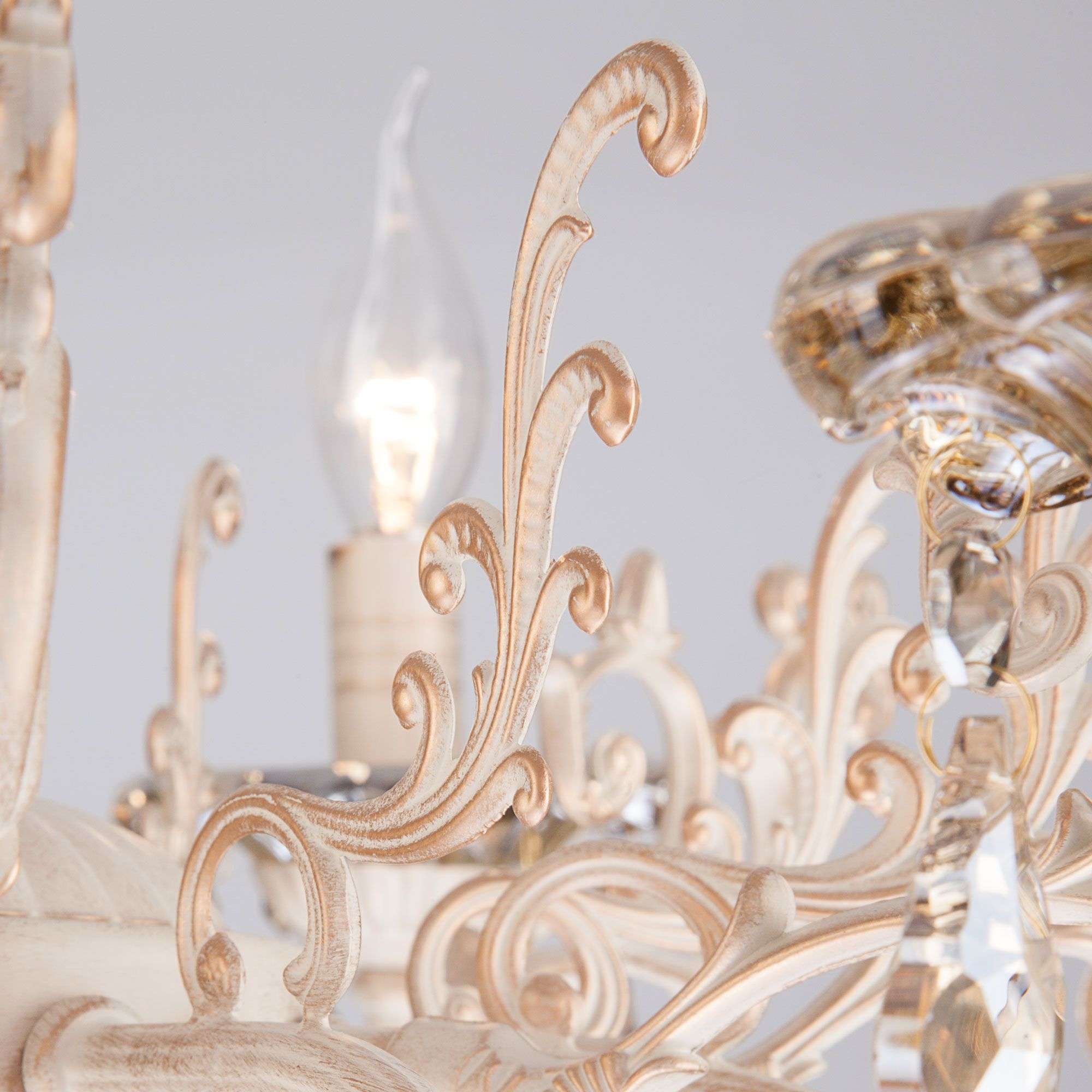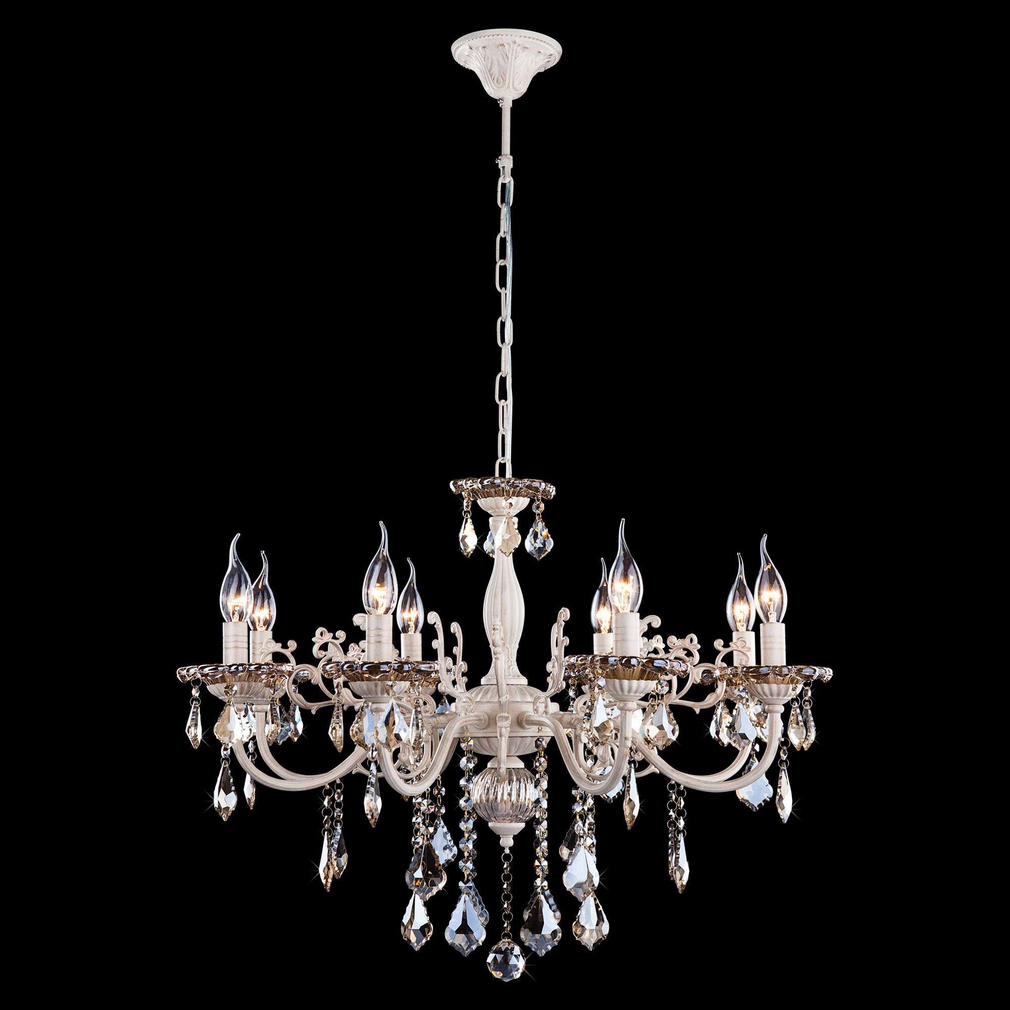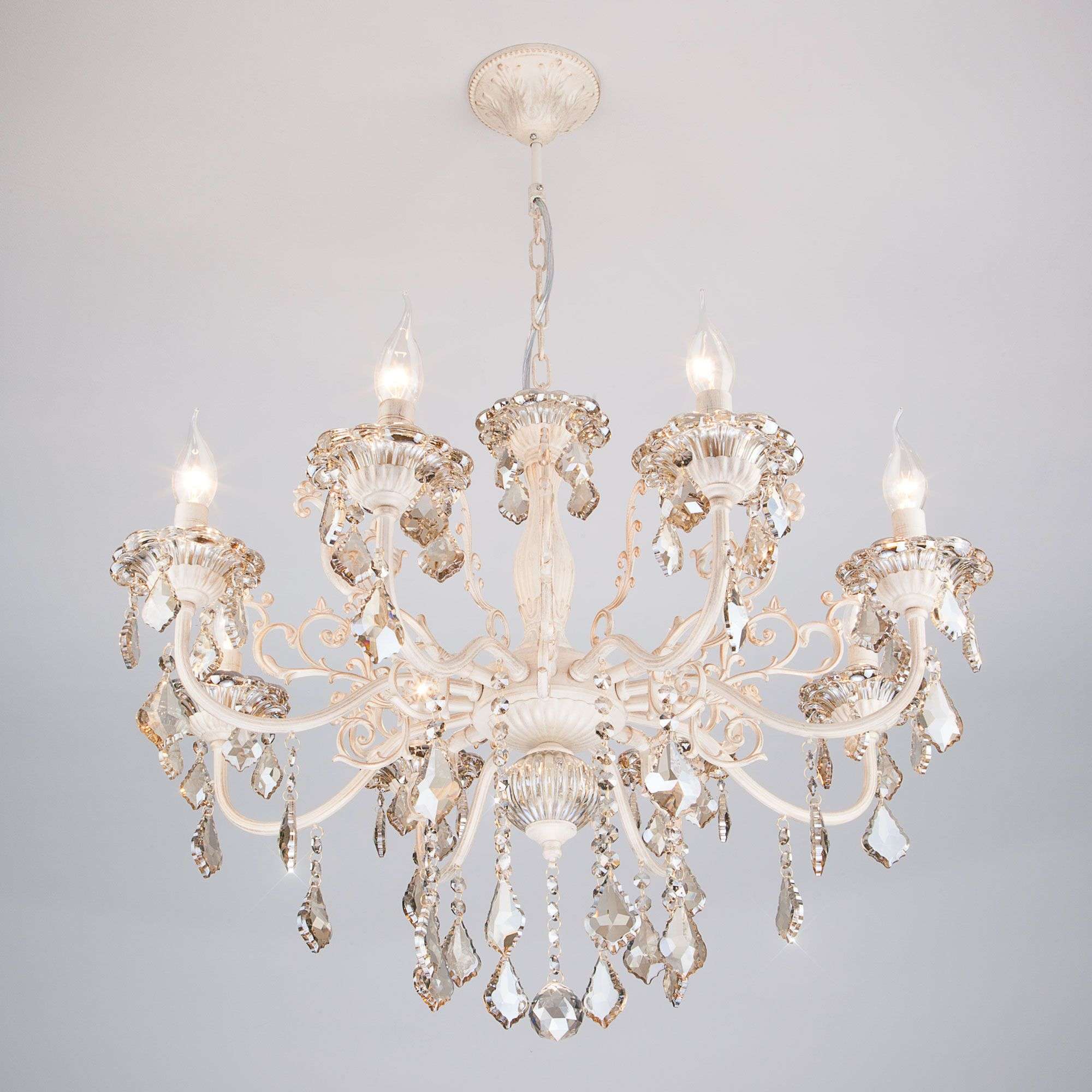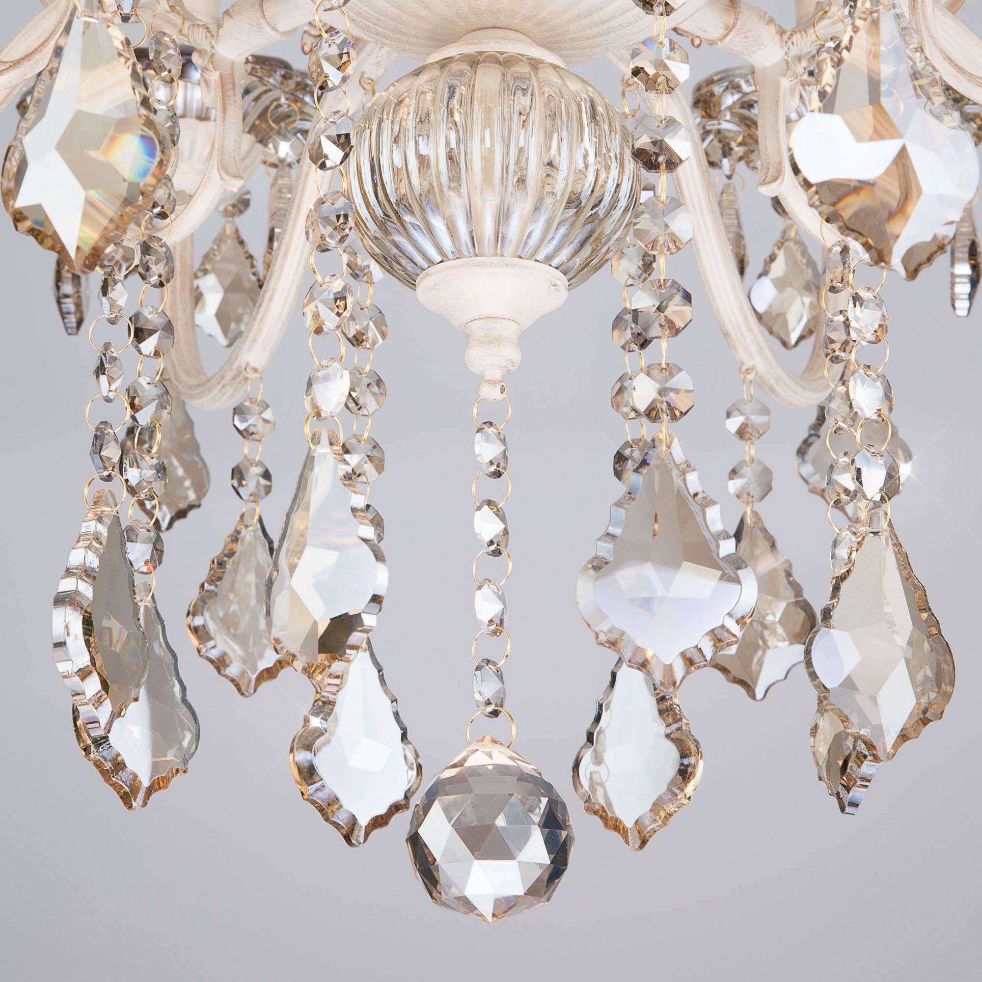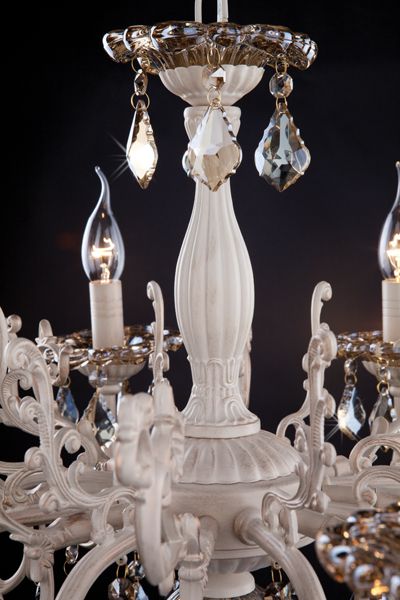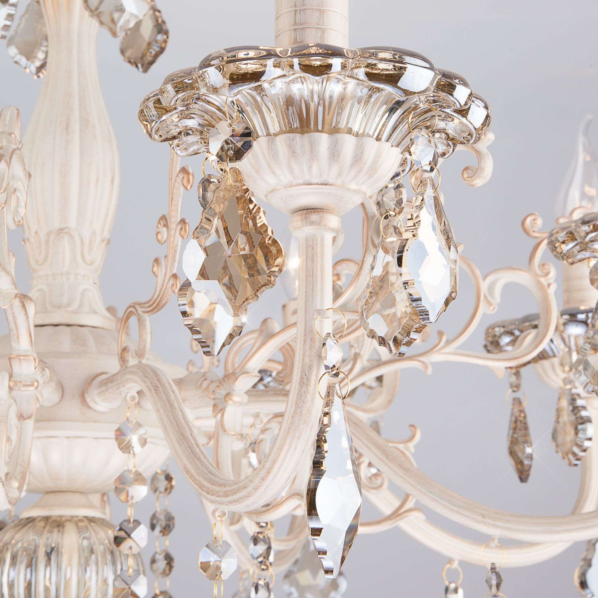 Классическая хрустальная люстра на 8 рожков в цвете белый с золотом / тонированный хрусталь преобразит потолочное пространство и создаст в вашем помещении комфортное полноценное освещение на площади 38 м кв. Изящные формы и классический стиль добавят вашей гостиной утонченного аристократизма.