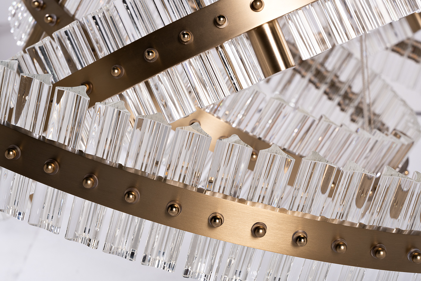 Подвесная стеклянная люстра – эффектное украшение интерьера, в котором отдается предпочтение эксклюзивным вещам с выраженной индивидуальностью и эстетикой. Изюминка данного потолочного светильника – необычная форма в виде переплетения металлических колец разного диаметра. За блеск конструкции отвечают стеклянные кристаллы. За счет такого дизайна люстра из стекла и металла выглядит фантастично, напоминает светящиеся орбиты. Качество исполнения и функциональность этого светильника безупречны. Оригинальная люстра органично впишется в интерьер ар-деко, неоклассика, минимализм, модерн.