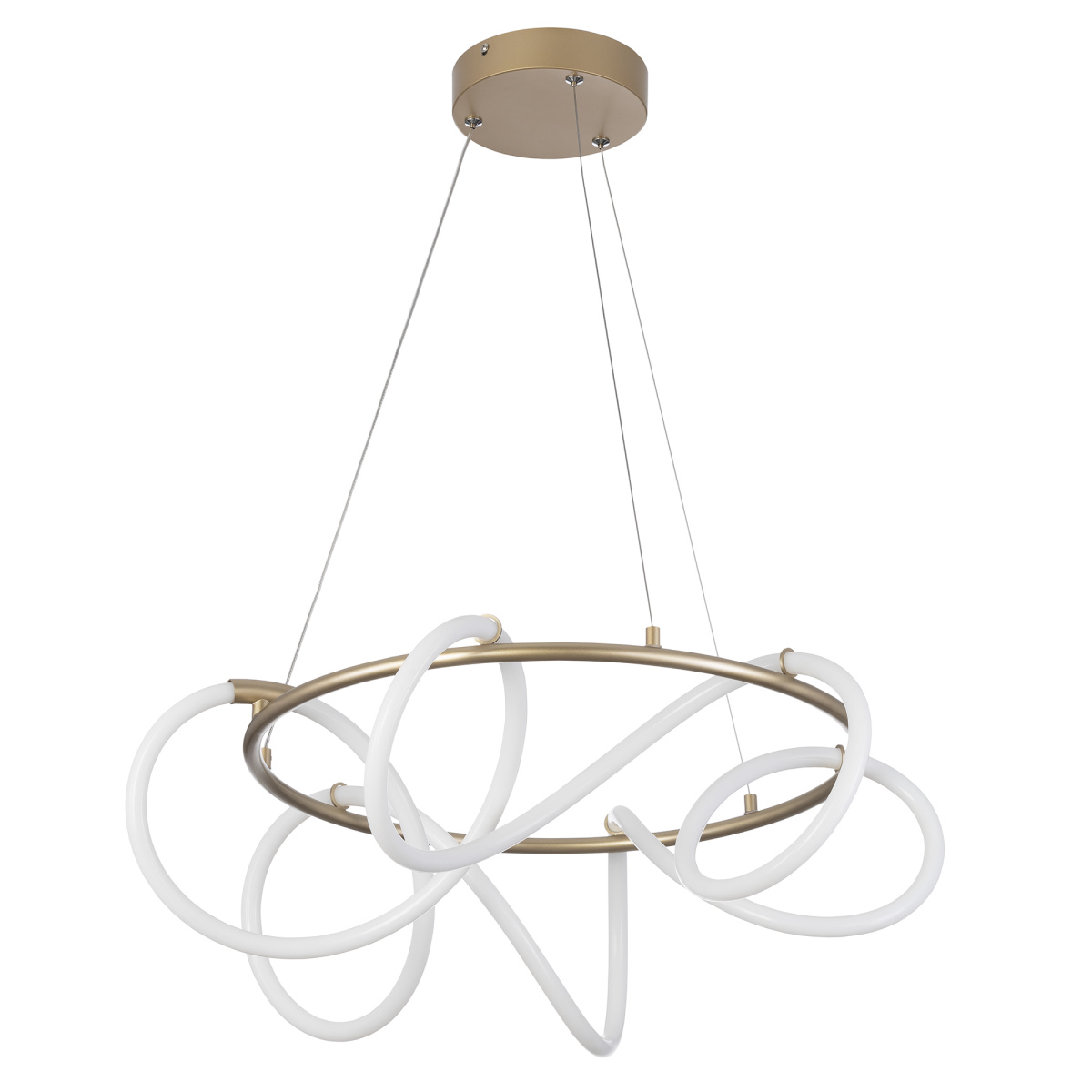 Оригинальная подвесная LED люстра CL210132 от производителя Ситилюкс EVA - воплощение современного стиля и элегантности. Матовый золотой металлический корпус и гибкий световод, изящно обвивающий кольцо создают неповторимый образ. Мощность изделия 41Вт, световой поток 4140Лм, цветовая температура 4000К – нейтральный белый свет, индекс цветопередачи CRI >80. Диаметр модели 60см, высота легко регулируется при установке в диапазоне от 37см до 1,4м.Данную модель CL210132 спешите купить в магазине 220svet.ru