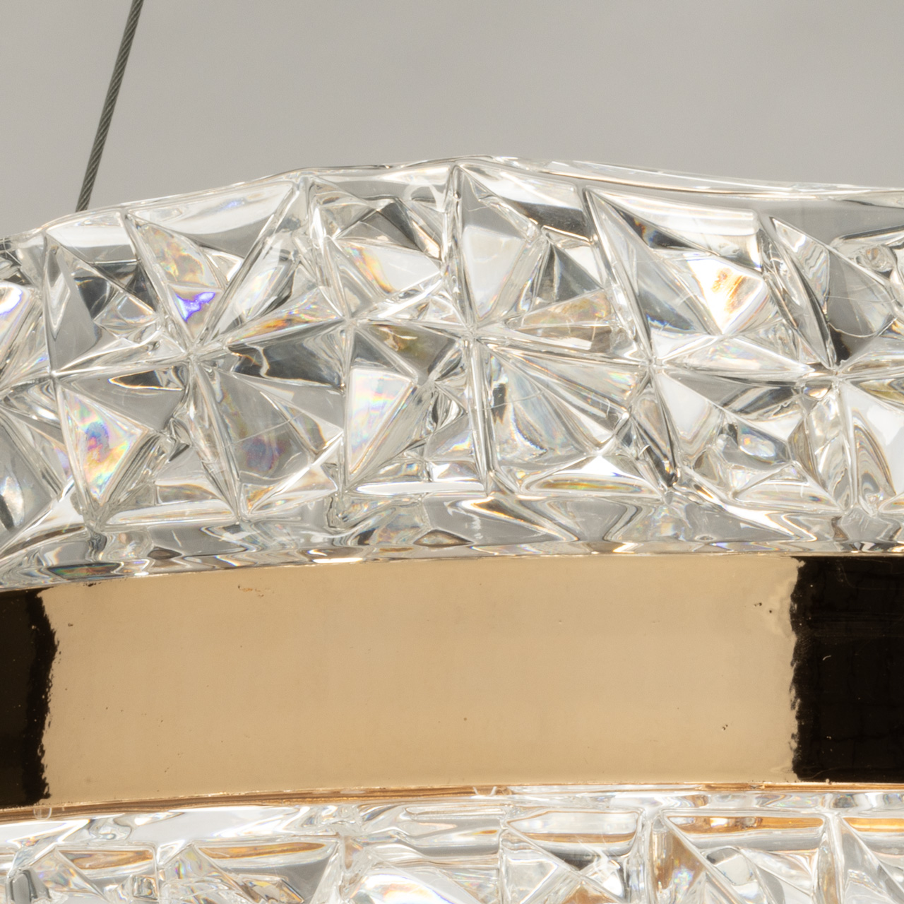 Потолочный светильник Платлинг подвешен на прочных металлических тросах, что придаёт ему лёгкость и воздушность. Общая высота светильника составляет 90 см, что делает его уместным даже в помещениях с высокими потолками. Основание светильника выполнено из качественного металла и гальванизировано в элегантный золотой цвет. Этот золотистый оттенок придаёт изделию роскошный вид и гармонично сочетается с различными стилями интерьера — от классического до современного минимализма. Плафон светильника изготовлен из фактурного акрила, который не только обеспечивает равномерное рассеивание света, но и добавляет интересные текстурные акценты в общий дизайн. Светильник Платлинг оснащён встроенными светодиодами мощностью 68W, что обеспечивает яркое и эффективное освещение. Светильник способен осветить помещение площадью до 19 квадратных метров, что делает его идеальным решением для гостиных, кухонь или детских. Светодиоды отличаются долговечностью и экономичностью, что позволяет значительно сократить расходы на электроэнергию по сравнению с традиционными лампами. Светильник оснащен пультом, что дает возможность регулировать температуру света от 3000-6000 K.Лаконичный и современный дизайн светильника Платлинг соответствует актуальным тенденциям в мире освещения. Простота форм и отсутствие лишних деталей делают его универсальным элементом, который легко вписывается в любой интерьер. Светильник может использоваться как самостоятельный источник света, так и в сочетании с другими осветительными приборами, создавая гармоничное освещение в пространстве.