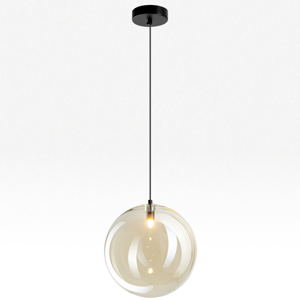 овременный подвесной светильник Citilux ORTON CL202042 представляет собой гармоничное сочетание правильных геометрических форм и воздушной лёгкости. Прозрачный стеклянный шар с золотистым оттенком шампань, подвешенный на чёрном матовом металлическом основании, выглядит эффектно при любом освещении.