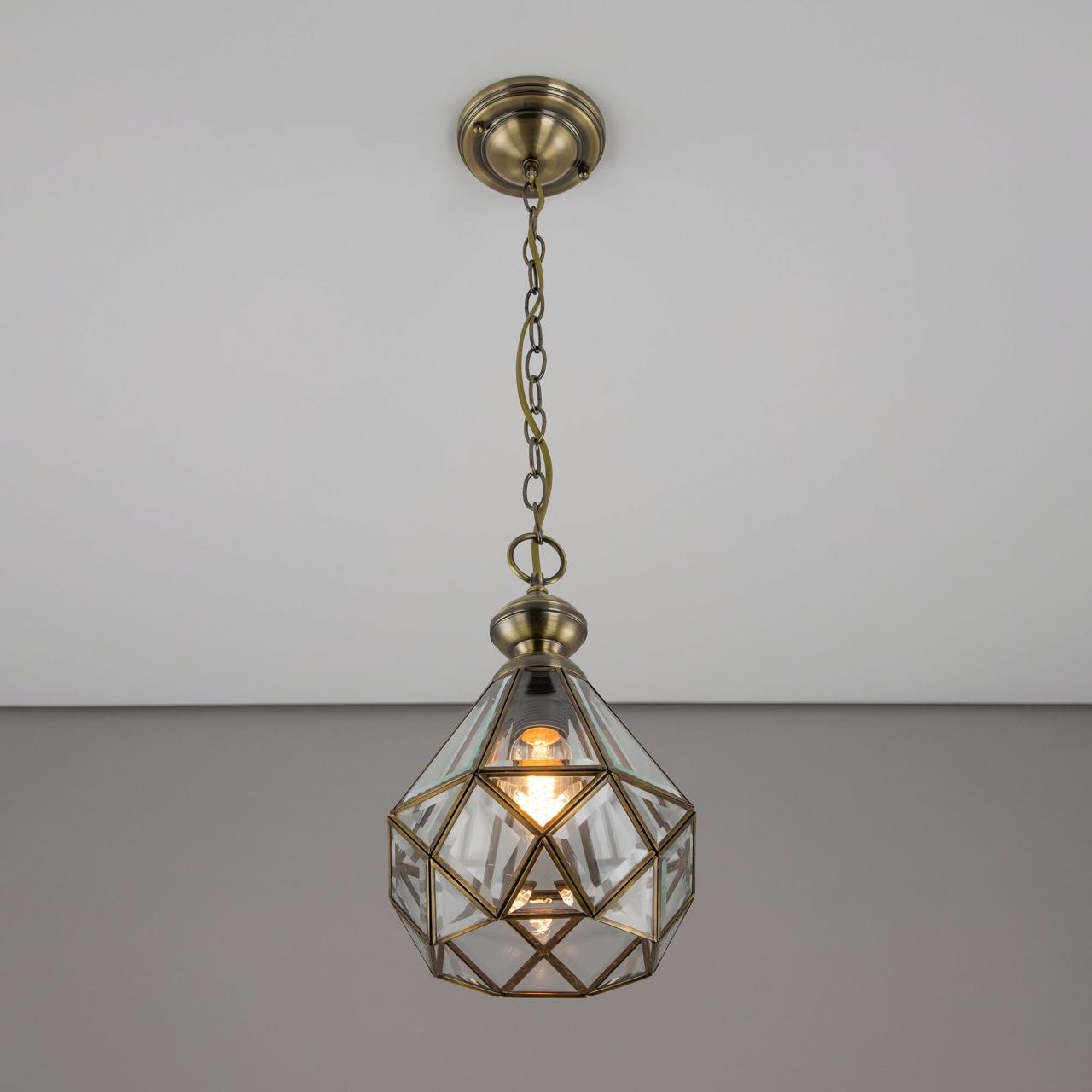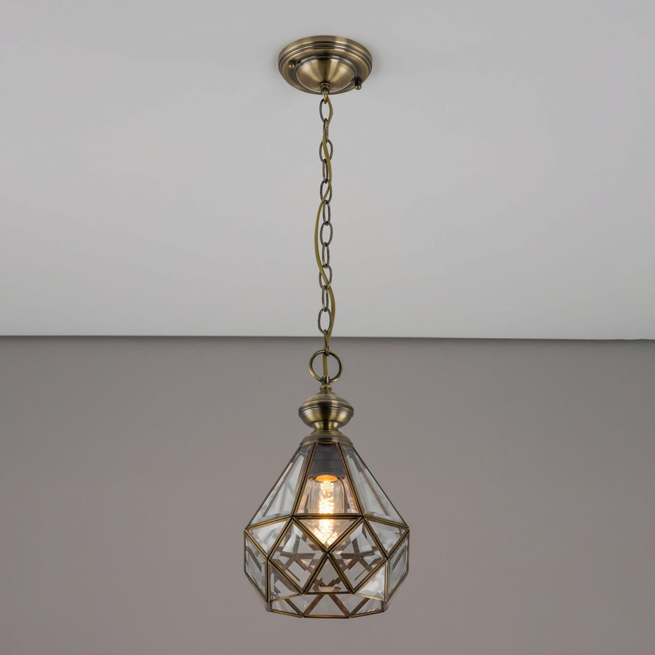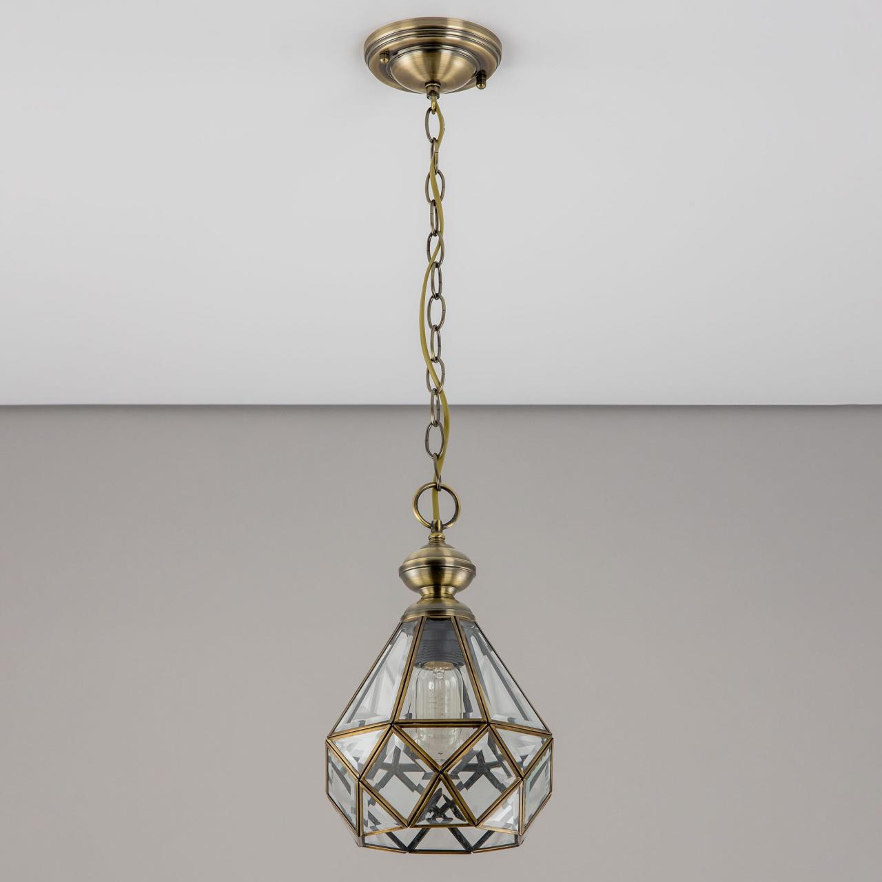 Подвесной светильник Citilux Витра-1 CL442110 в винтажном стиле. Основание металлическое, цвет бронза. Плафон ручной работы из прозрачного витражного стекла. В изделии 1 лампа Е27 максимальной мощностью для ламп накаливания 75Вт. Светодиодные лампы можно использовать более яркие. Высота подвеса регулируется при установке от 32см до 1м, диаметр 20см, осветит около 4м². Тип крепления – планка.