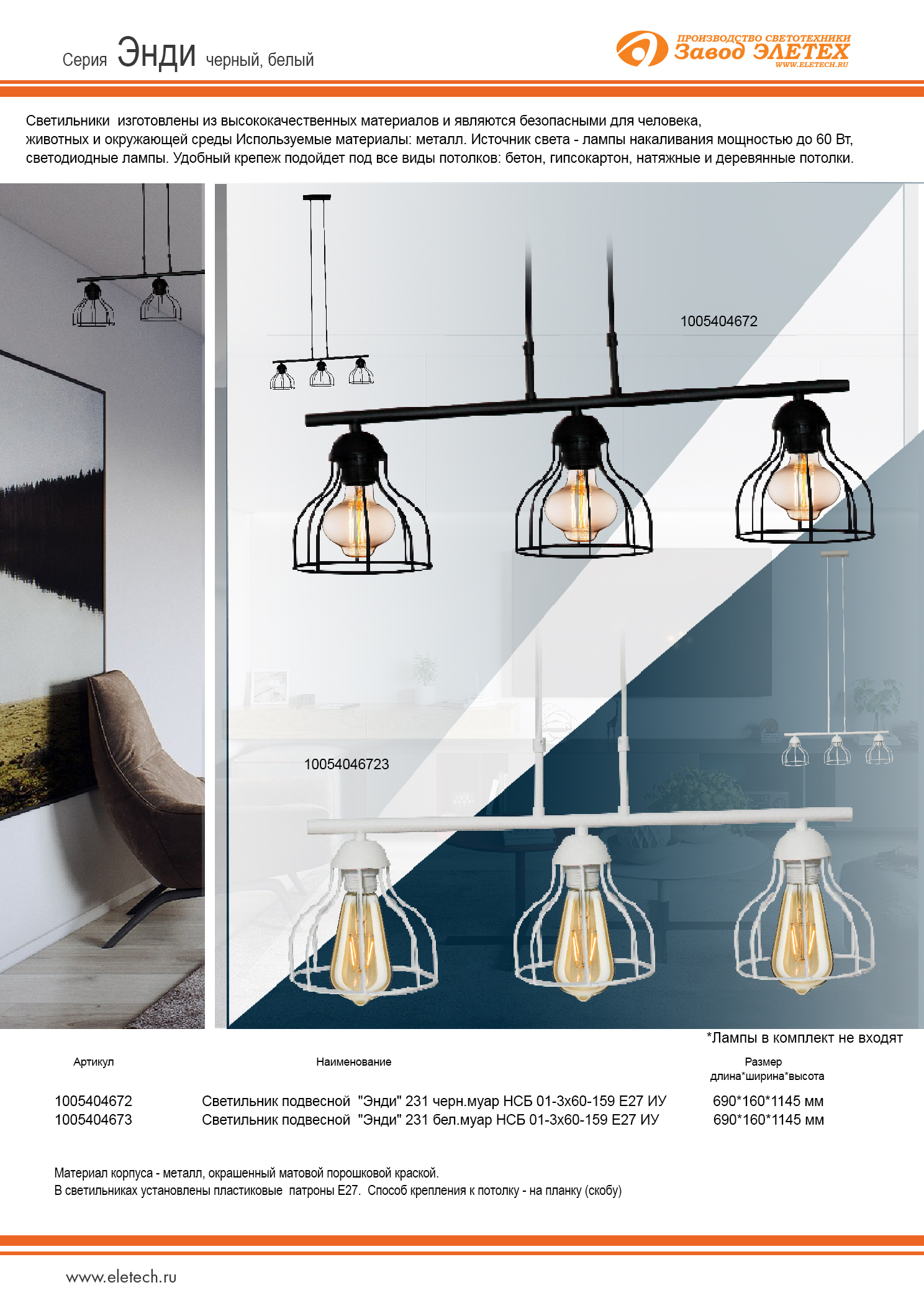 Подвесной светильник Элетех энди 1005404672 в Подольске