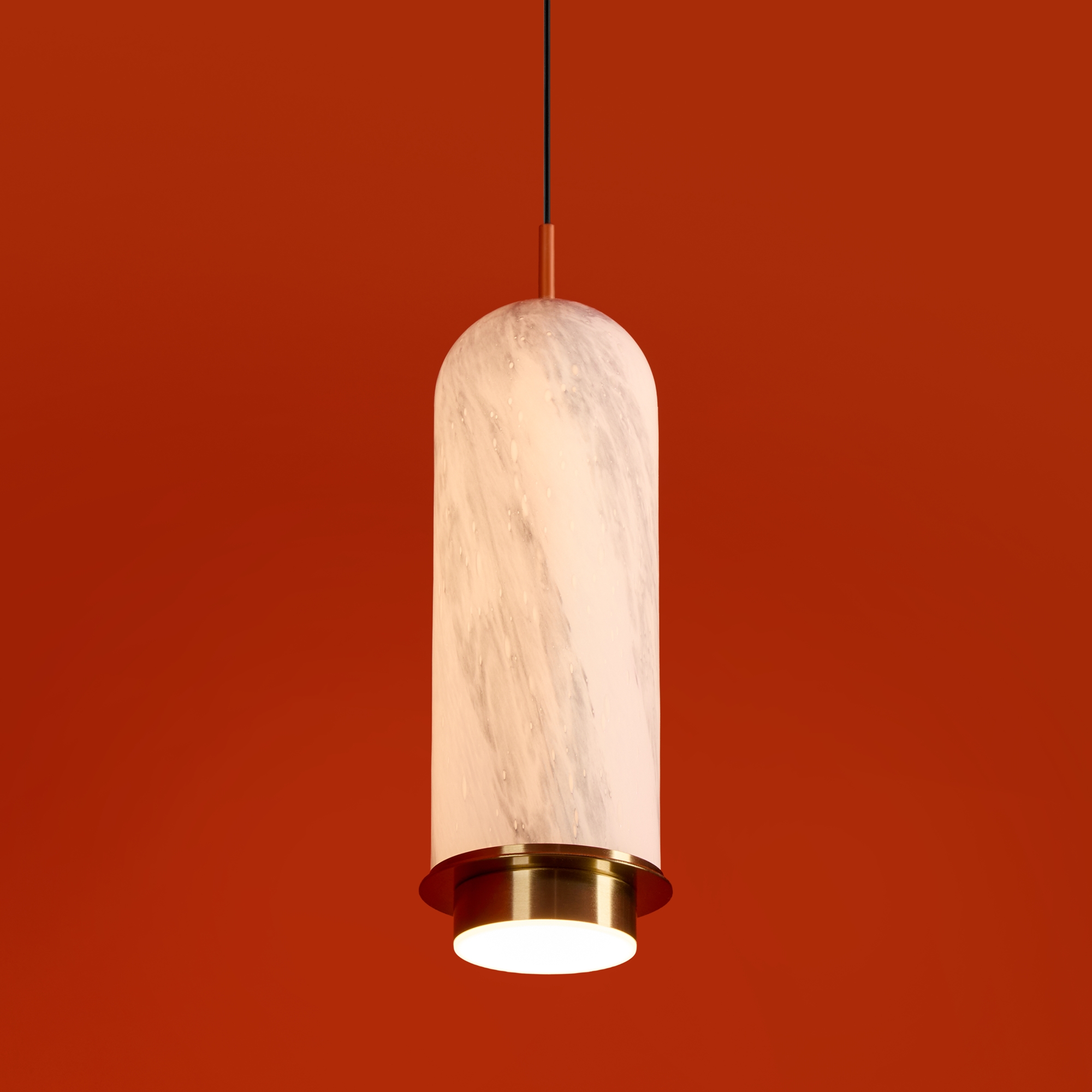 Арматура — металл. Стеклянные плафоны с имитацией мрамора и полосками в ретро-стиле. Интегрированный LED источник света 2700К, угол рассеивания 360°. Высота регулируется.