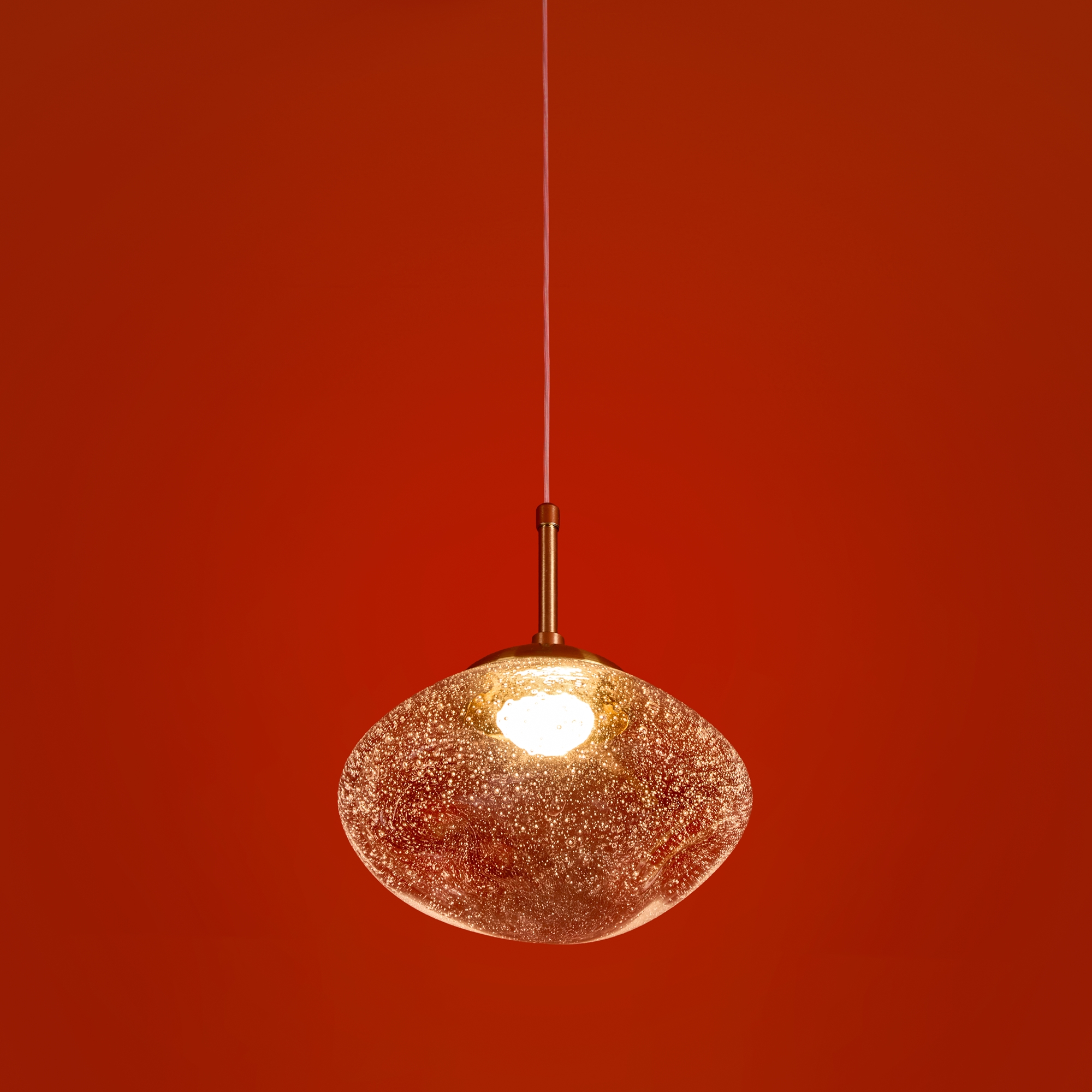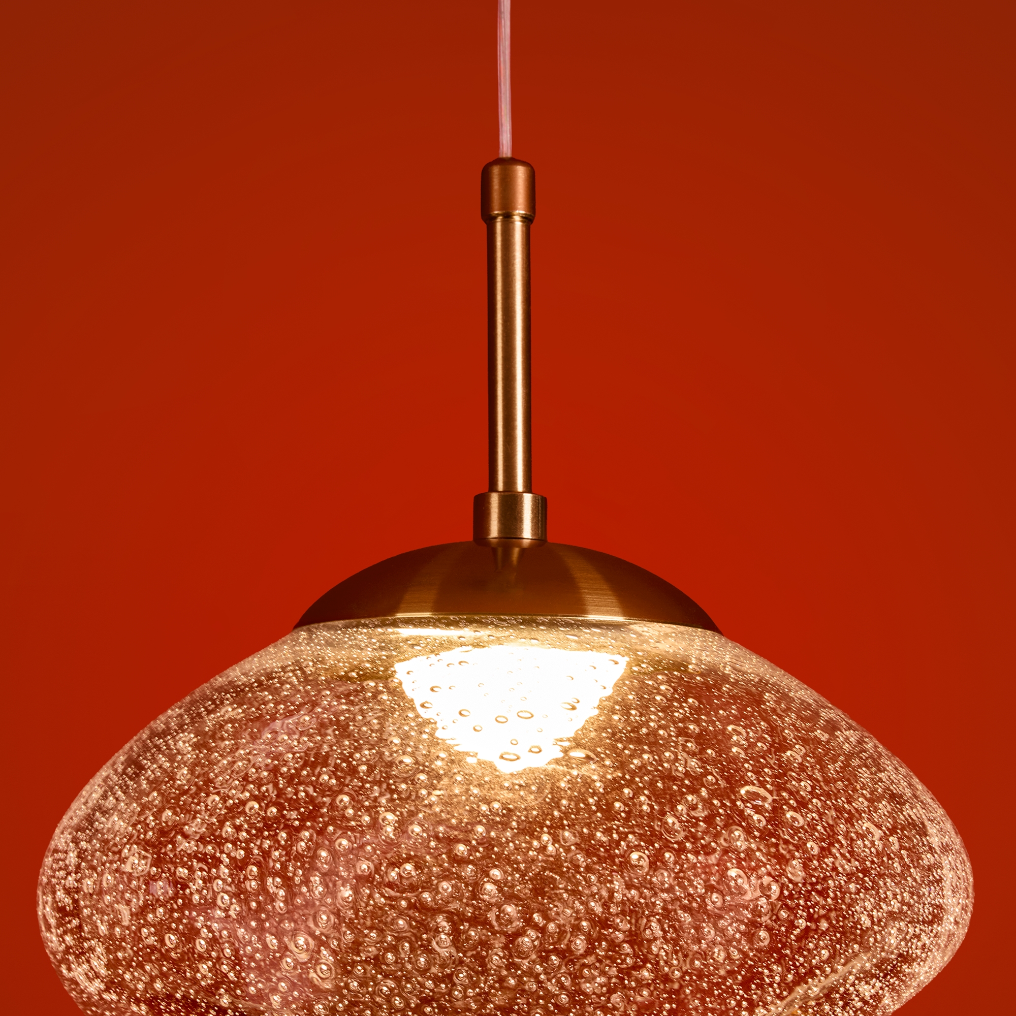 Арматура — металл. Стеклянные плафоны с пузырьками в трёх цветах: дымчатый, прозрачный, янтарный. Интегрированный LED источник света 3000К, Ra 80, угол 180°. Высота регулируется.