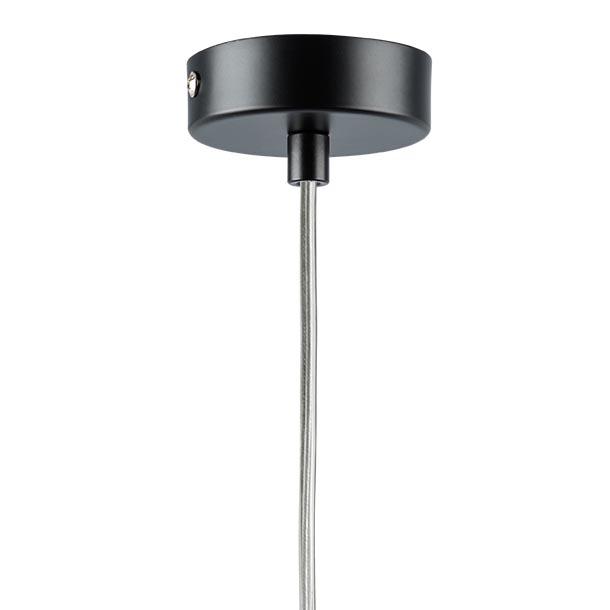 Подвесной светильник на прозрачном тросе с черным матовым плафоном.