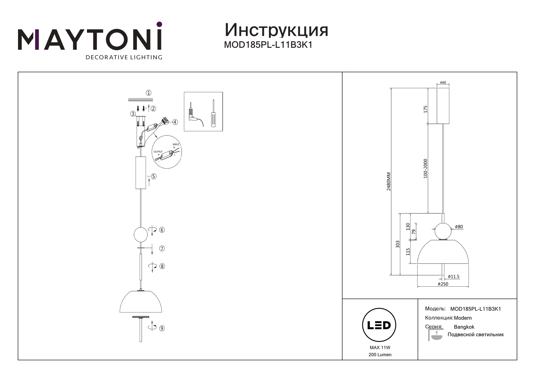 Данную модель MOD185PL-L11B3K1 с быстрой доставкой спешите купить по цене 17 990 ₽ в магазине 220svet.ru