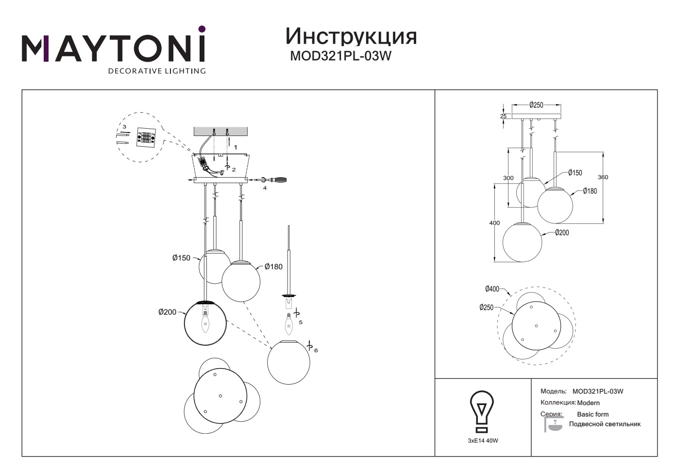 Подвесной светильник Basic form MOD321PL-03W станет прекрасным дополнением вашего дома и будет радовать вас своим стильным дизайном и функциональностью на протяжении многих лет.