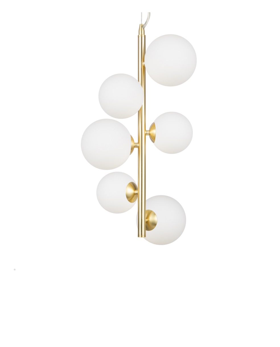 Подвесной светильник выполнен из высококачественных материалов: металлического каркаса в золотом цвете и белых стеклянных плафонов, изготовленных в форме шаров разного диаметра и висящих на вертикально подвешенной штанге. Благодаря своей компактности и размерам 290 мм х 1700 мм, а также регулировке по высоте от 525 мм до 1725 мм, она идеально впишется в любой интерьер и добавит изысканности вашему пространству. Тип подвеса трос.