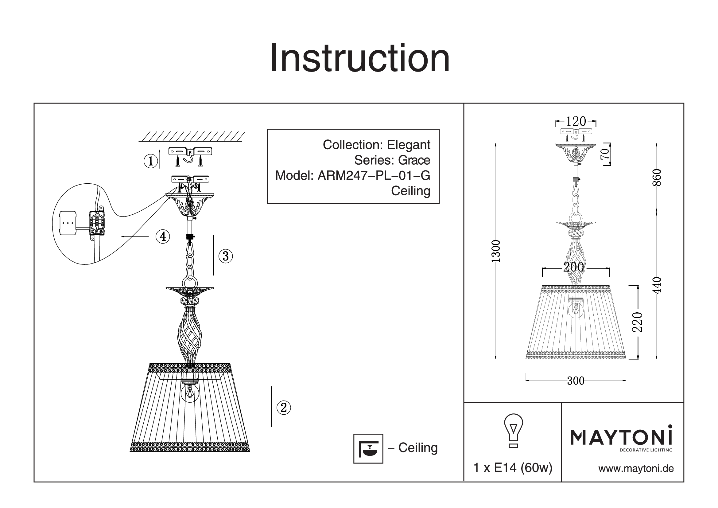 Подвесной светильник Maytoni Grace ARM247-PL-01-G в Подольске